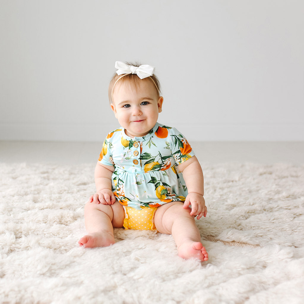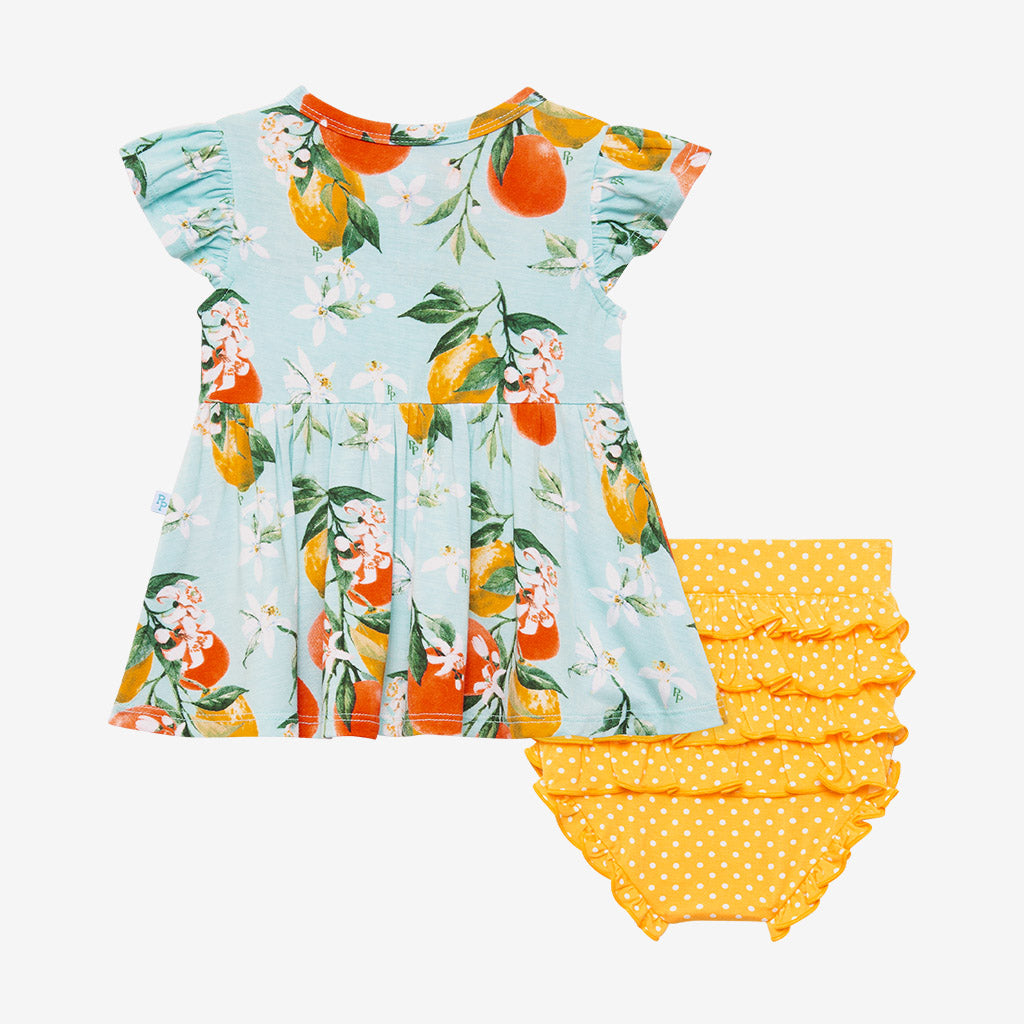 Posh Peanut Mirabella Ruffled Capsleeve Henley Peplum Top & Bloomer Set