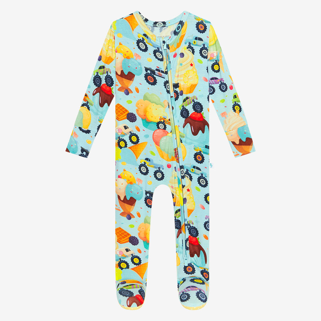 Viscose from bamboo one-piece footie with zipper opening. Signature Posh Peanut Footie grips, elastic backing on footies for a snug fit and fold-over mittens in sizes NB and 0-3M. Buttery soft jammies so cute you can wear them out!