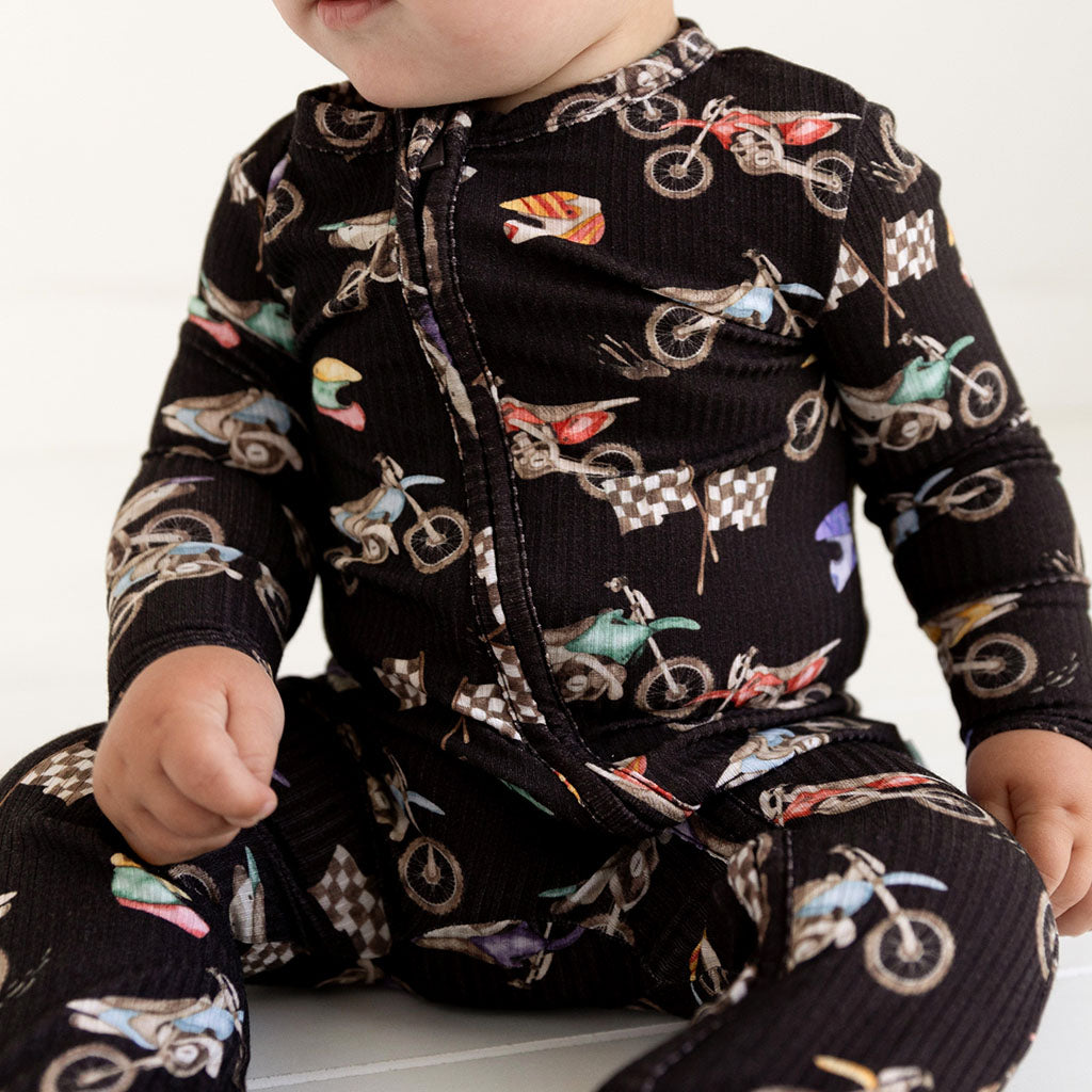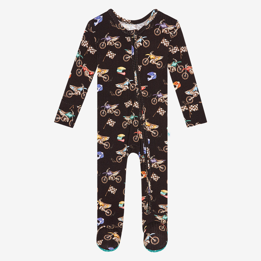 Viscose from bamboo one-piece footie with zipper opening. Signature Posh Peanut Footie grips, elastic backing on footies for a snug fit and fold-over mittens in sizes NB and 0-3M. Buttery soft jammies so cute you can wear them out!