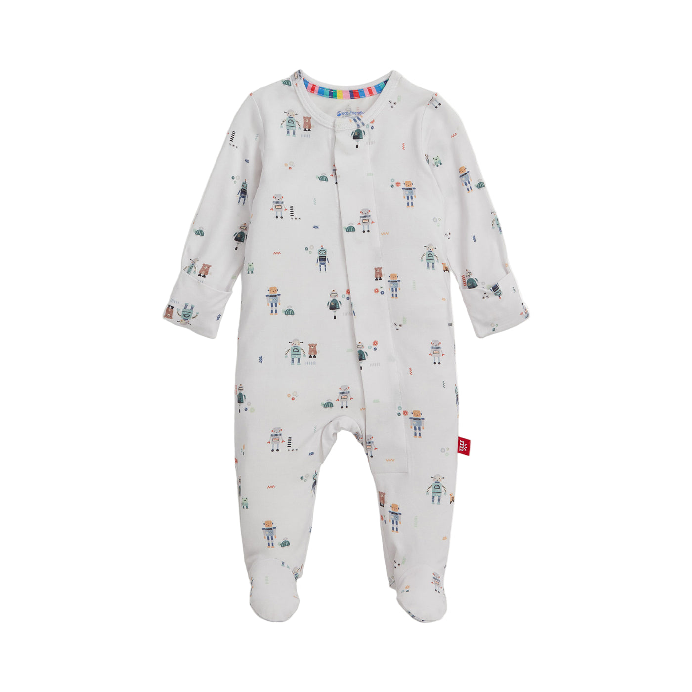 - Magnetic closures make for quick, easy dressing and diaper changes.