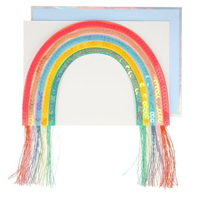 - This colorful rainbow card, beautifully crafted from shimmering sequins, is a charming way to send birthday wishes.