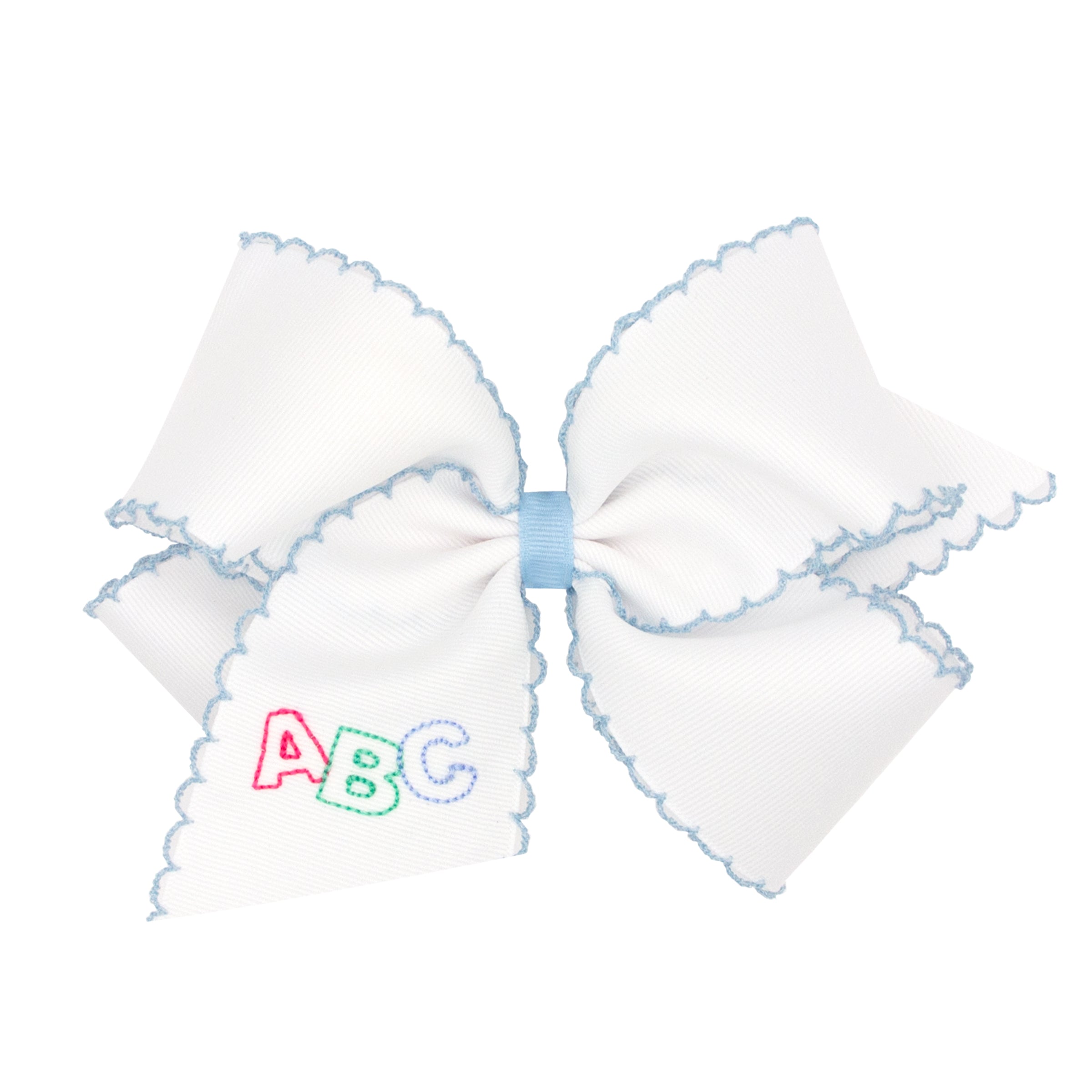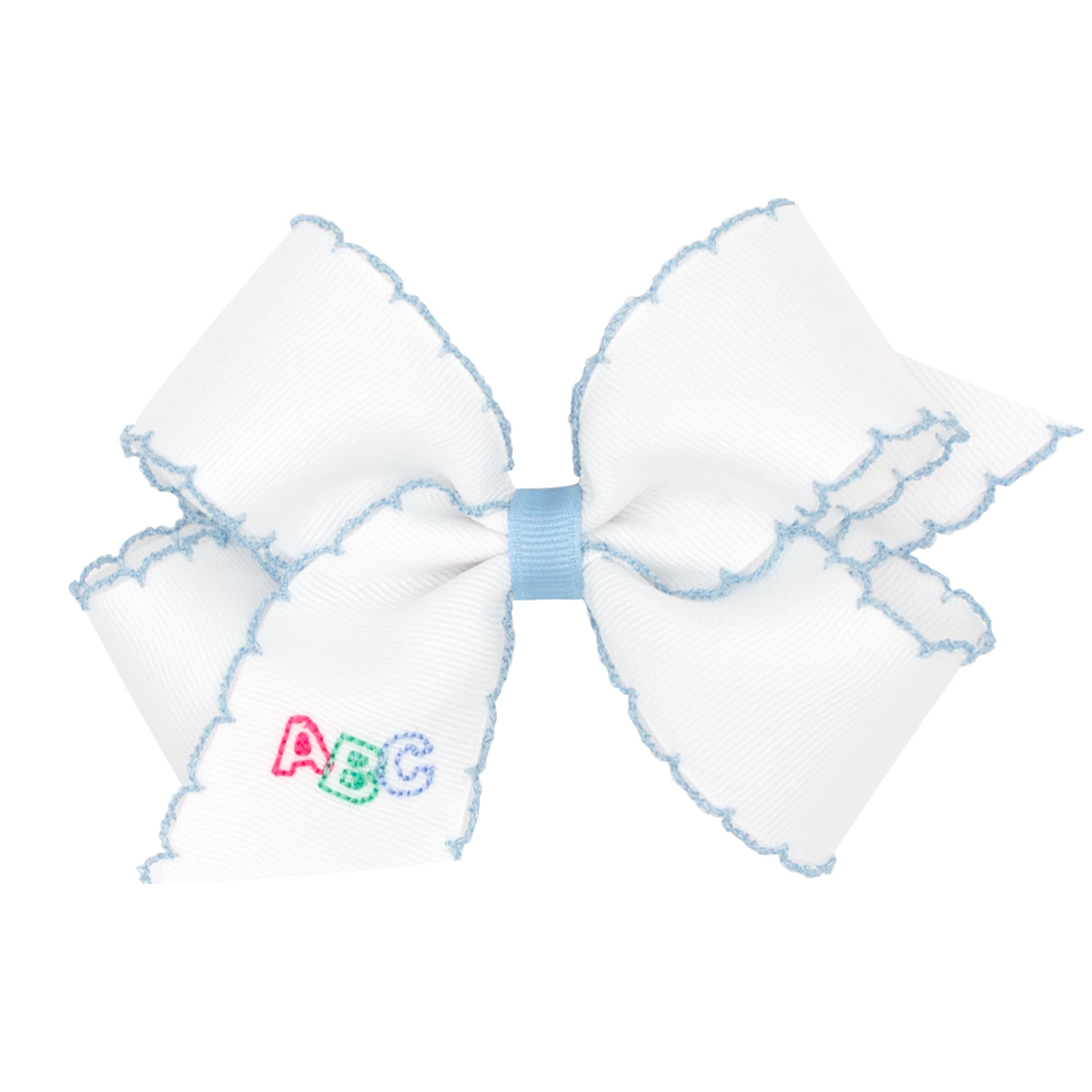 ABC Embroidered Blue Moonstitch Grosgrain Hair Bow on Clippie