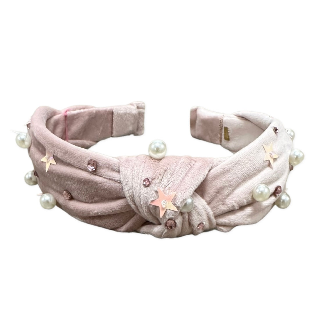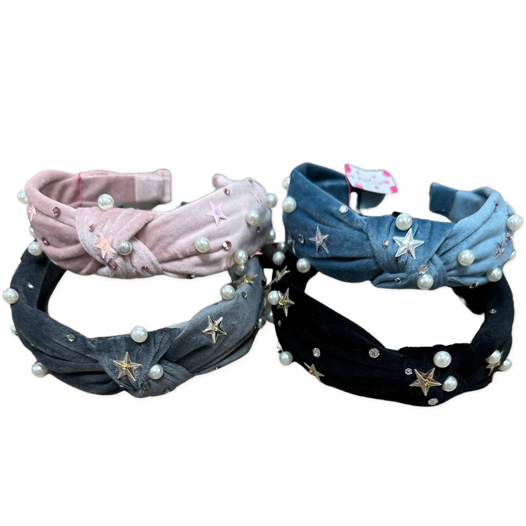 - This structured, and oh so comfortable headband, is accented with velvet fabric, stars and pearls for days.