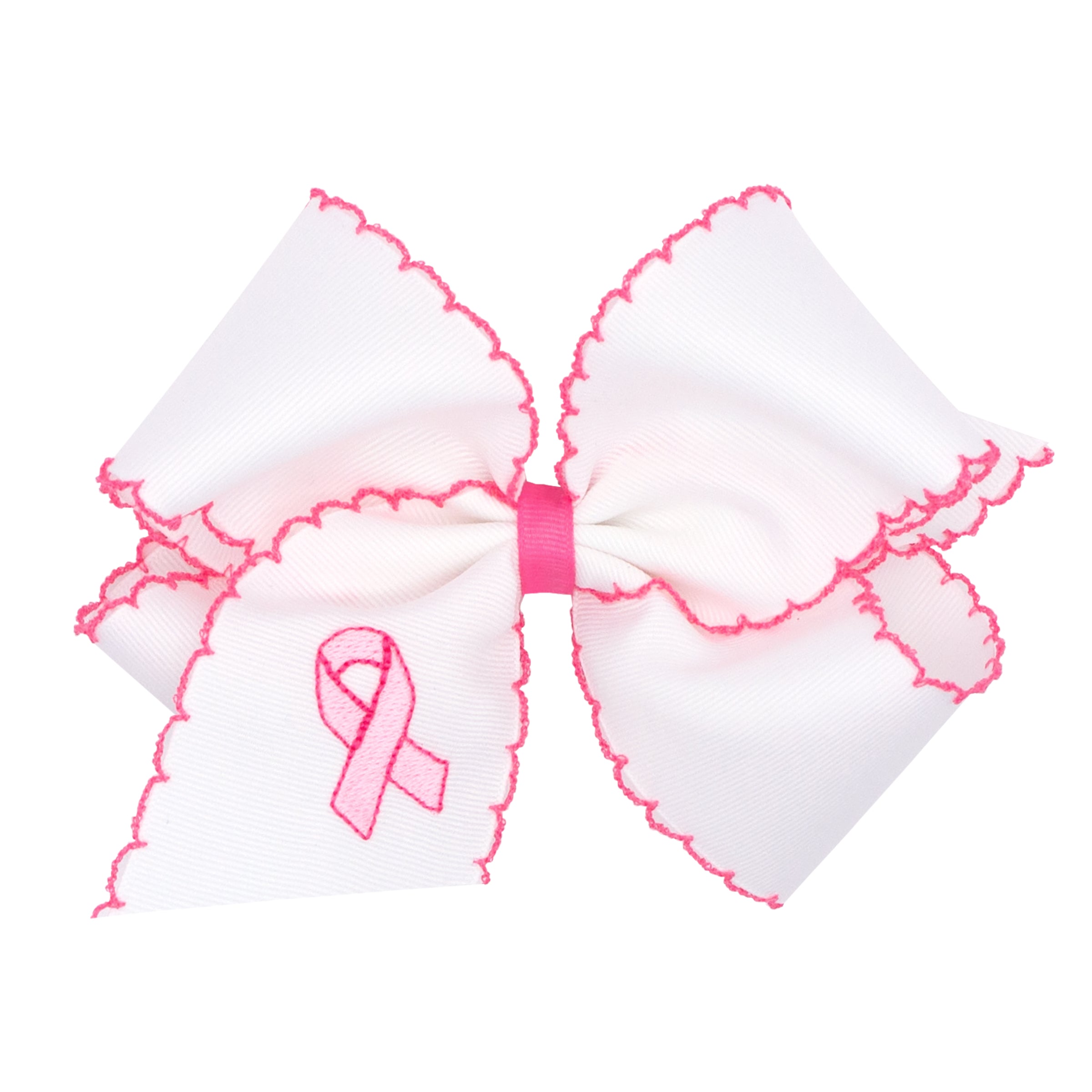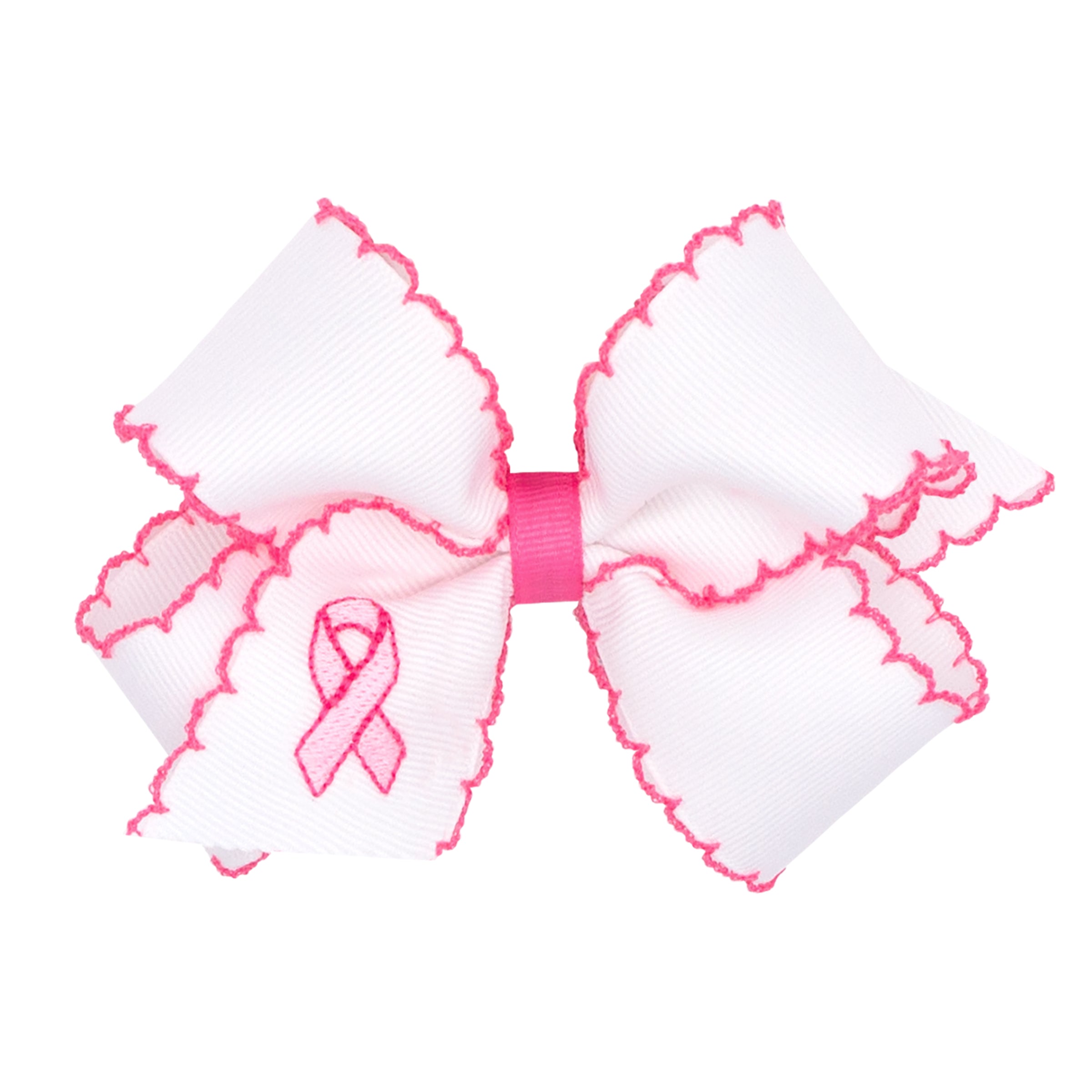 Breast Cancer Hot Pink Embroidered Hair Bow on Clippie