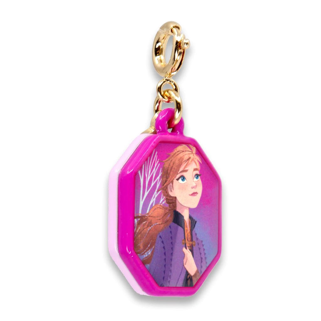 - Celebrate her favorite character and all the magic of Frozen II with a double-sided Gold Glitter Anna charm!