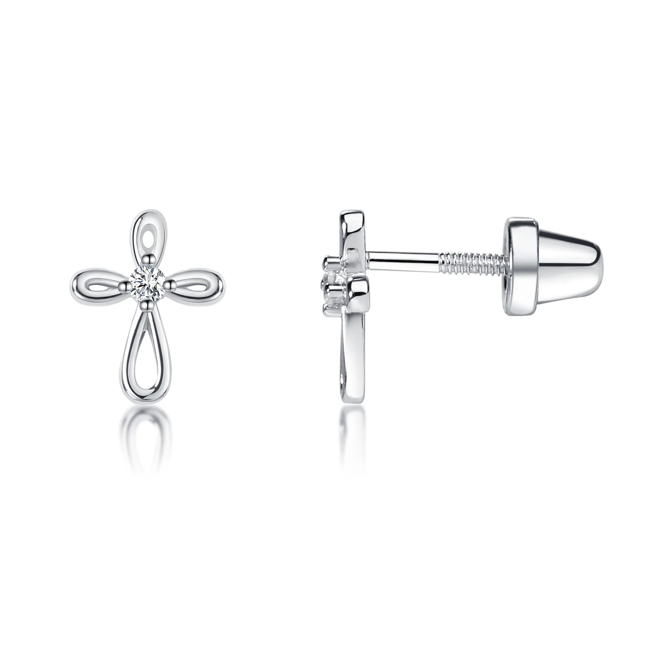Cherished Moments Sterling Silver Infinity Cross Earrings with Screw Back