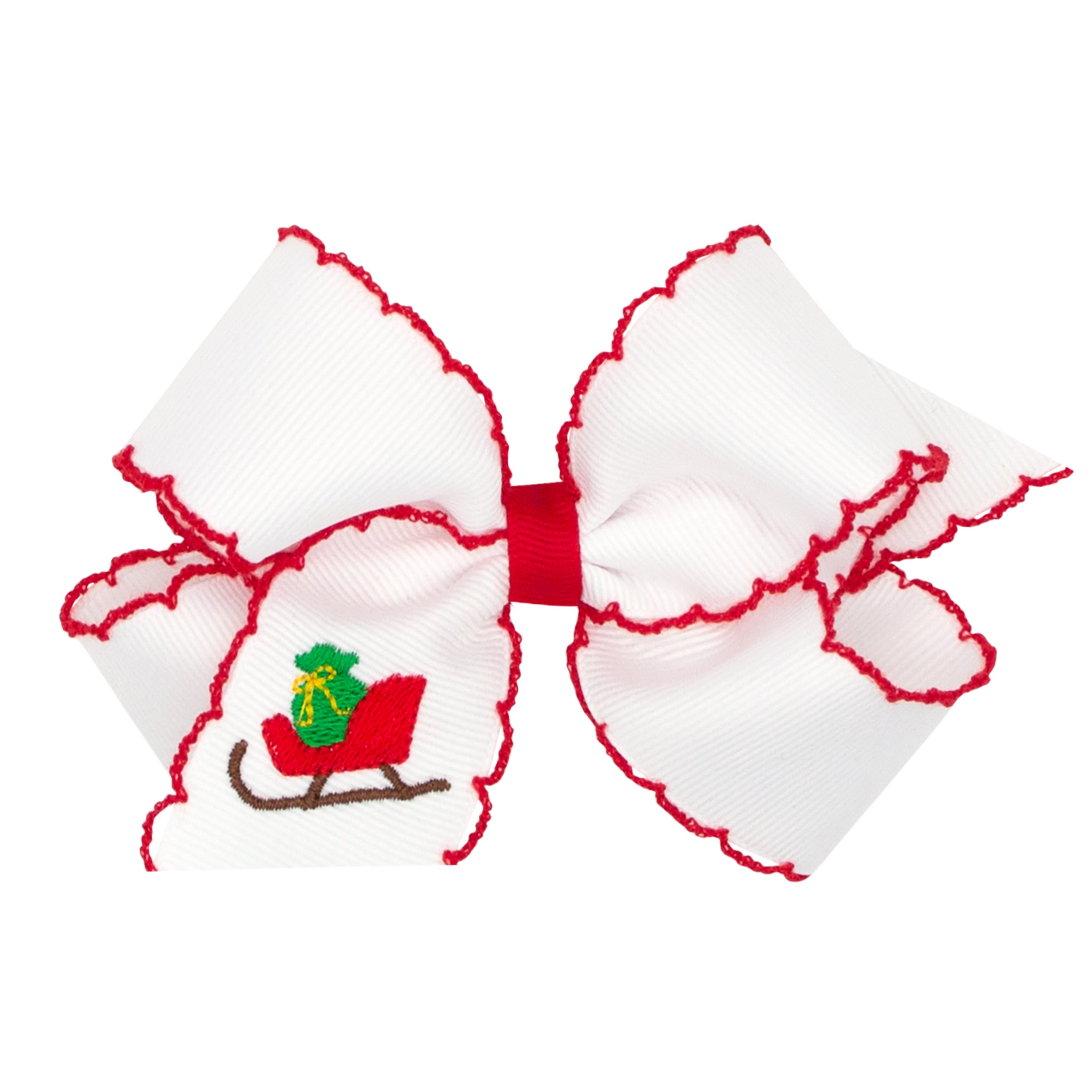 Embroidered Moonstitch Grosgrain Hair Bow on Clippie - Sleigh