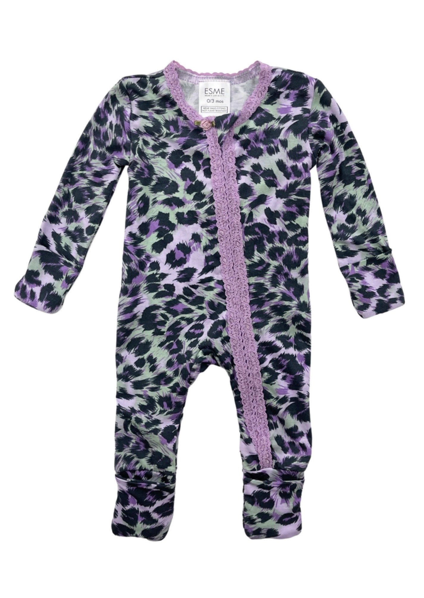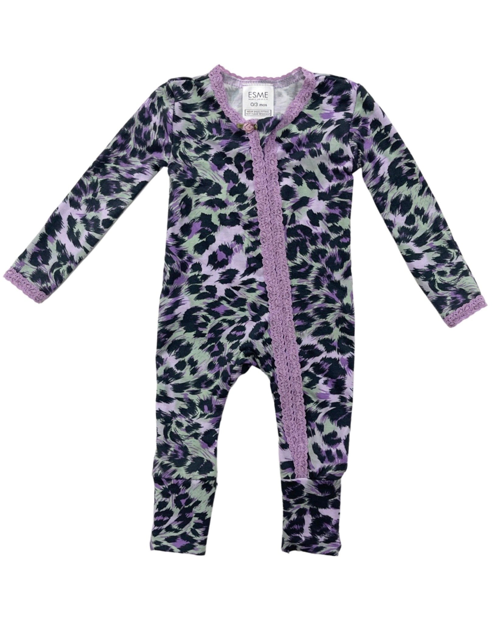 Esme Purple Cheetah Infant Flip Footie w/Lace Trim