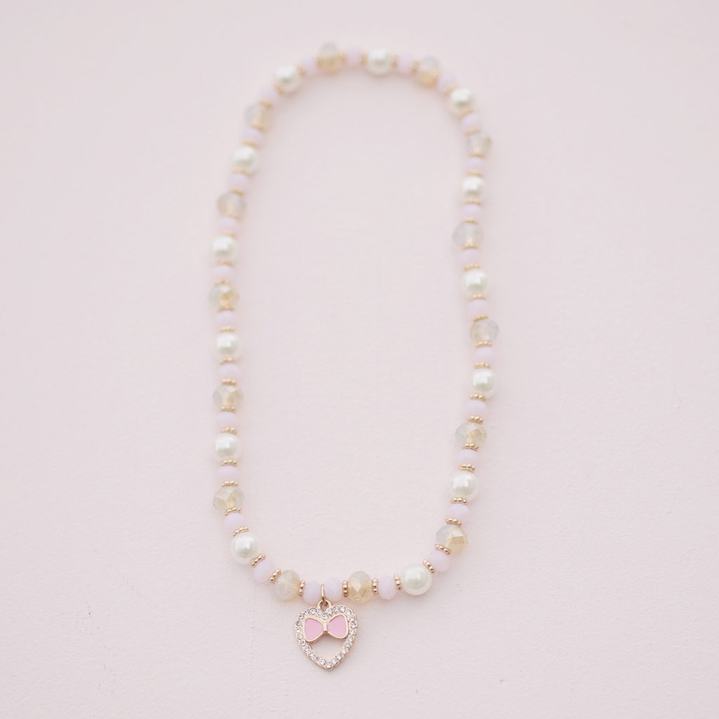 - It features a pink heart charm that is made with love.
