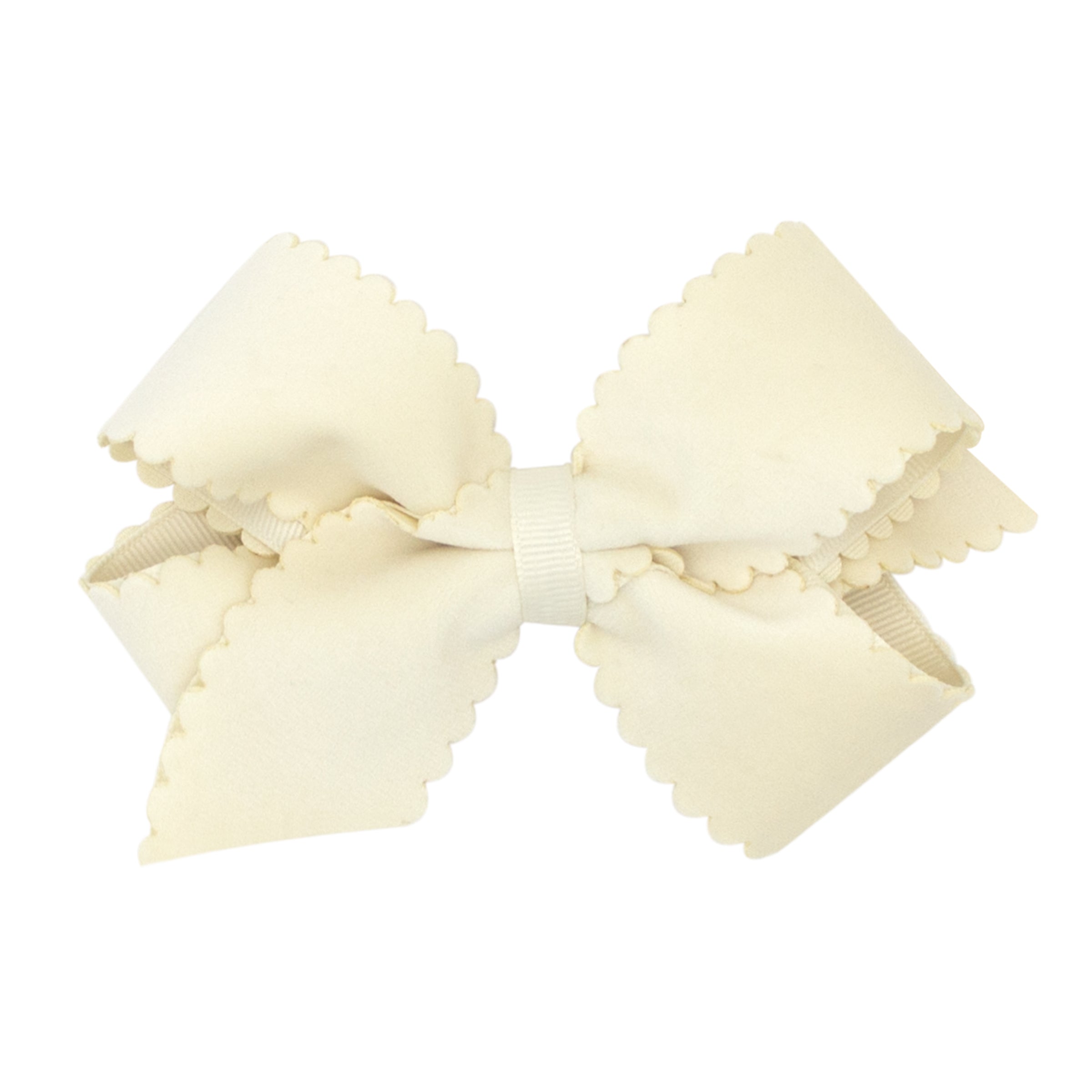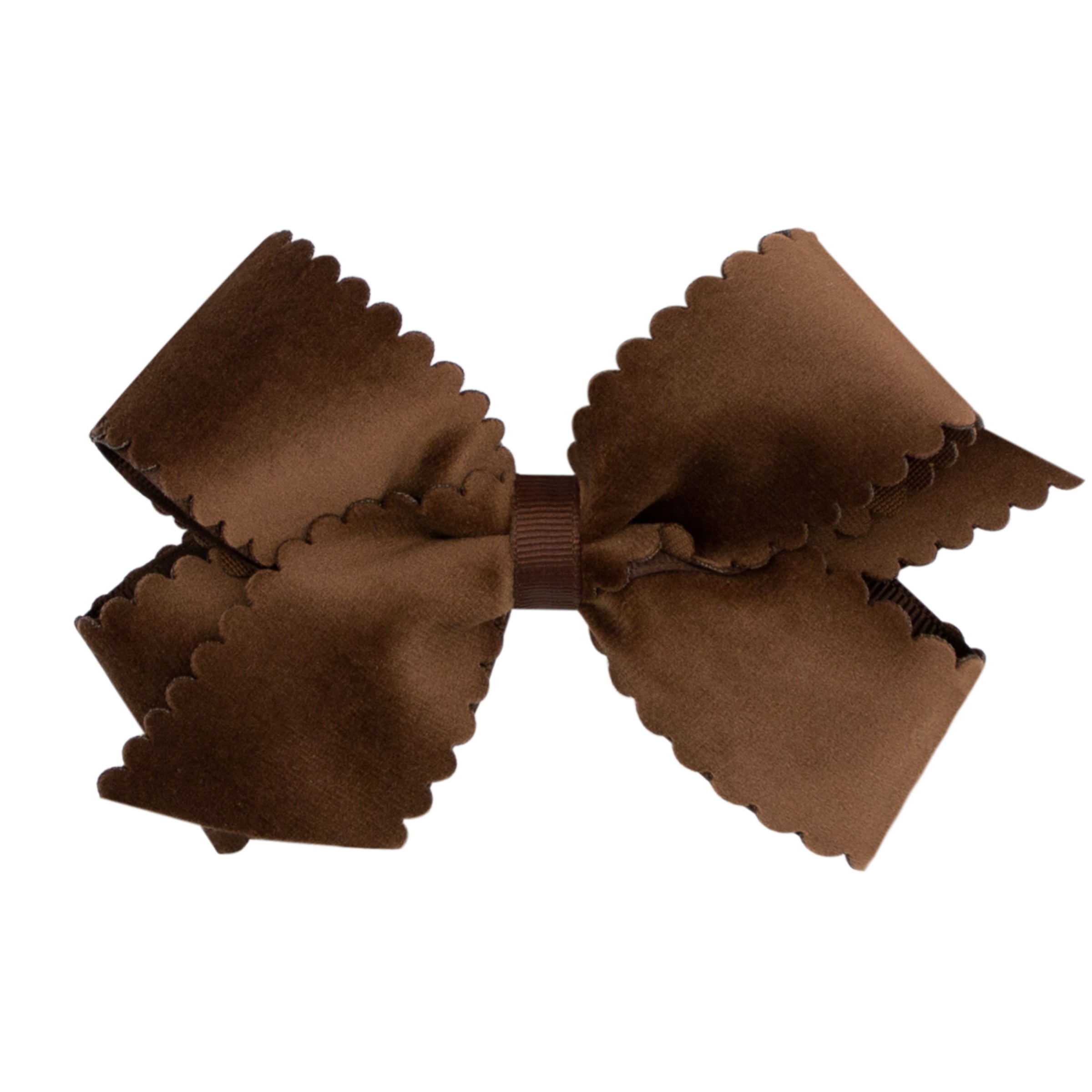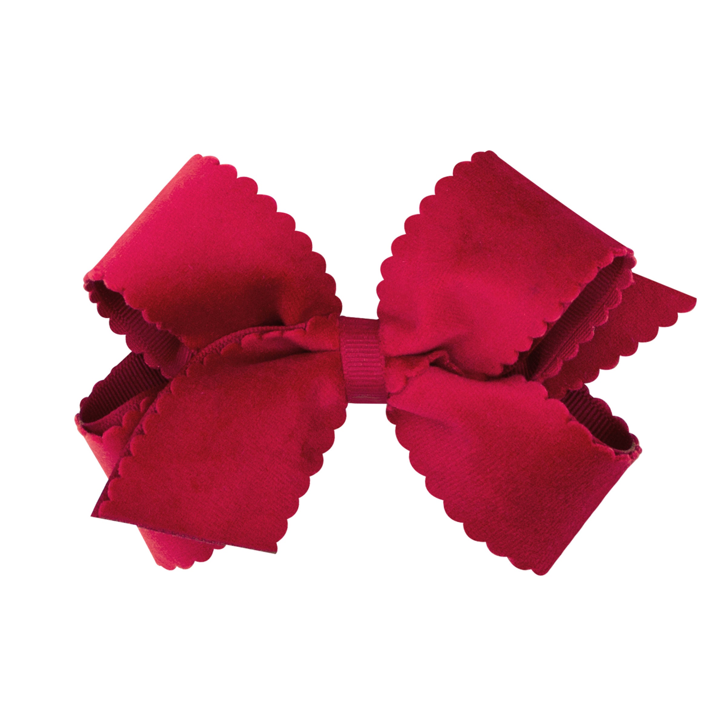 Medium Grosgrain with Scalloped Edge Faux Velvet Bow on Clippie