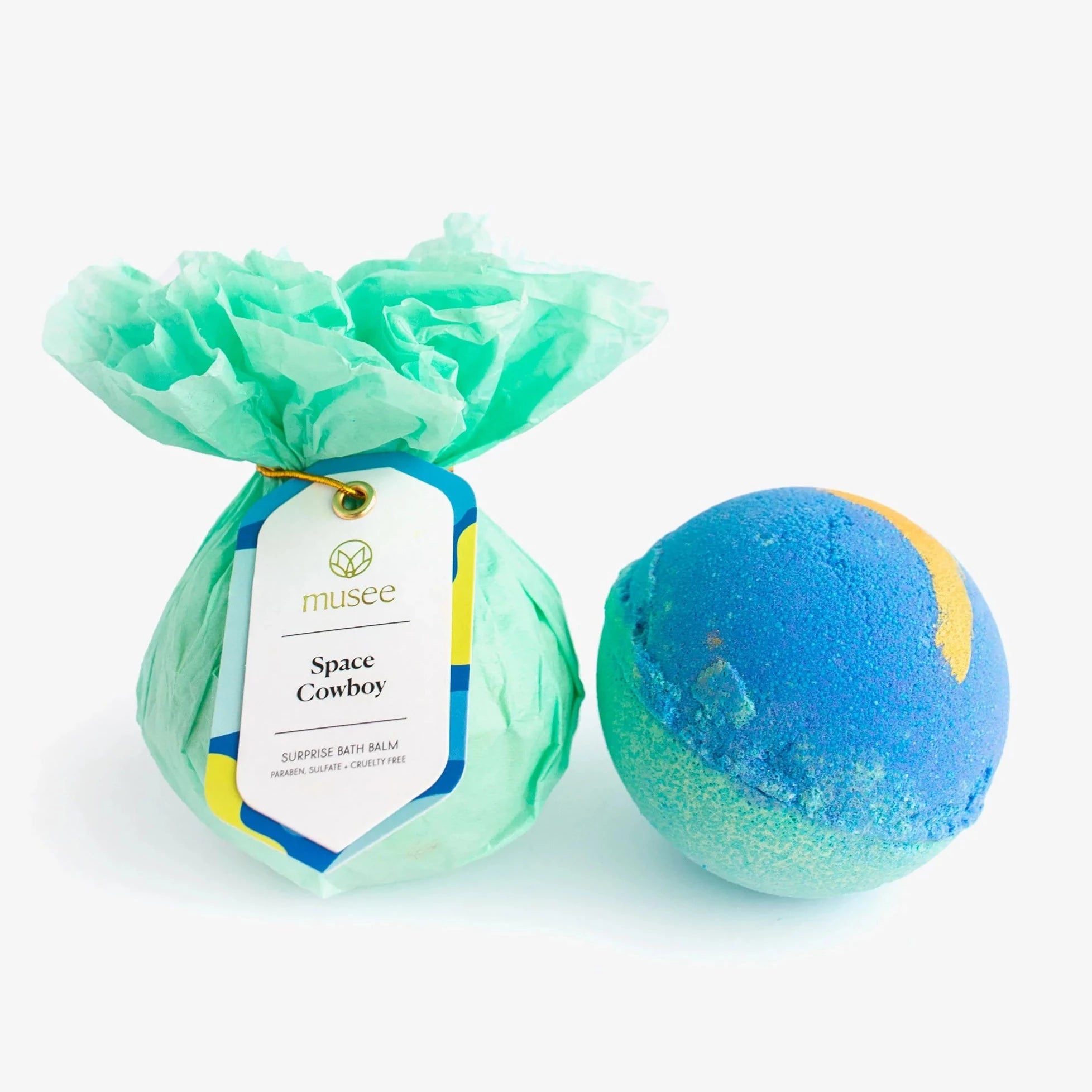- Let your imagination run out of this world with our all new Space Cowboy bath balm! With blue and green swirls, this fresh scent will transport you through the starts! Not to mention a stellar surprise on the inside!