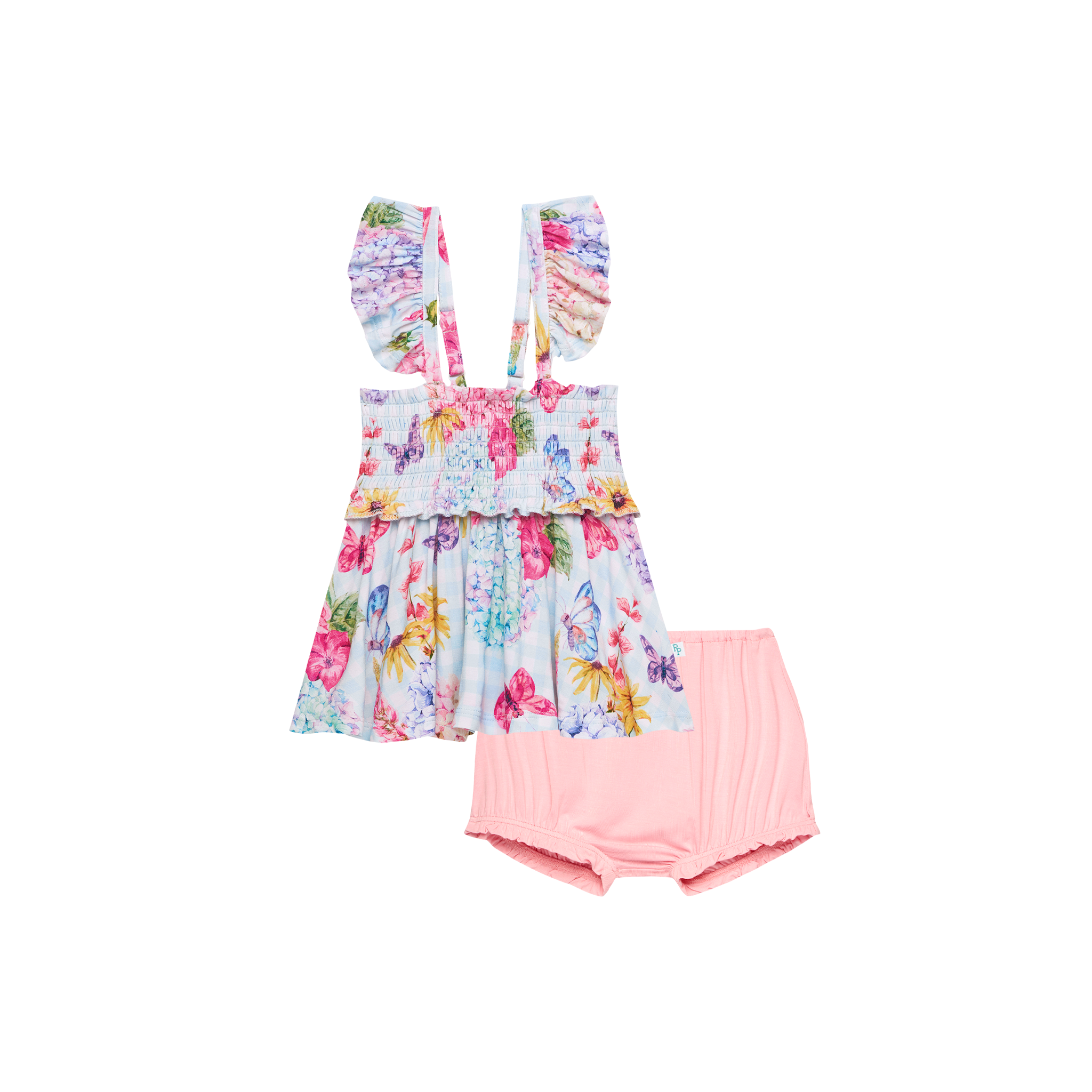 Posh Peanut Nicolette Smocked Flutter Sleeve Babydoll & Bloomer Set