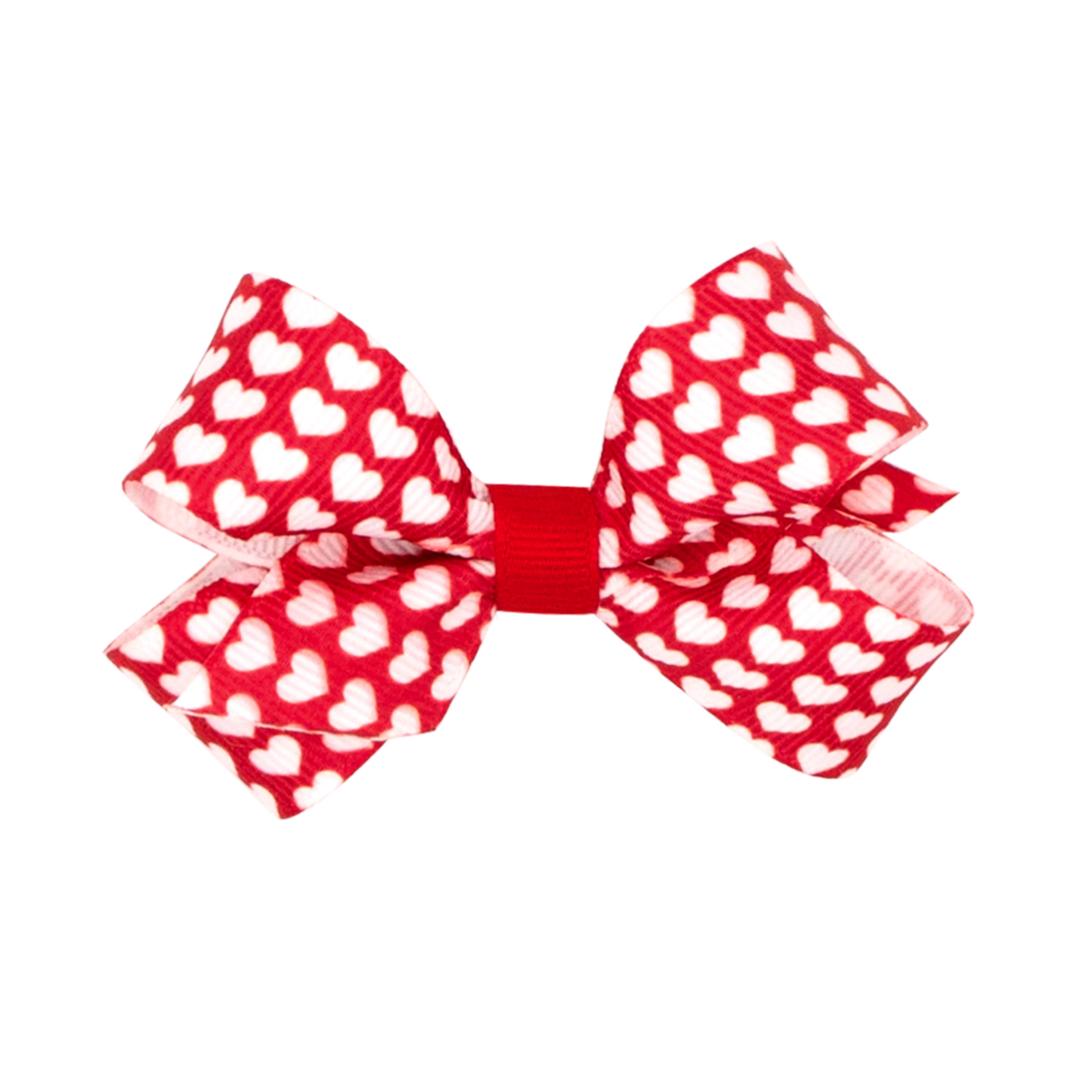 Red with White Hearts Print Hair Bow on Clippie