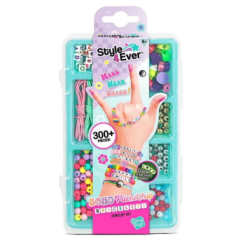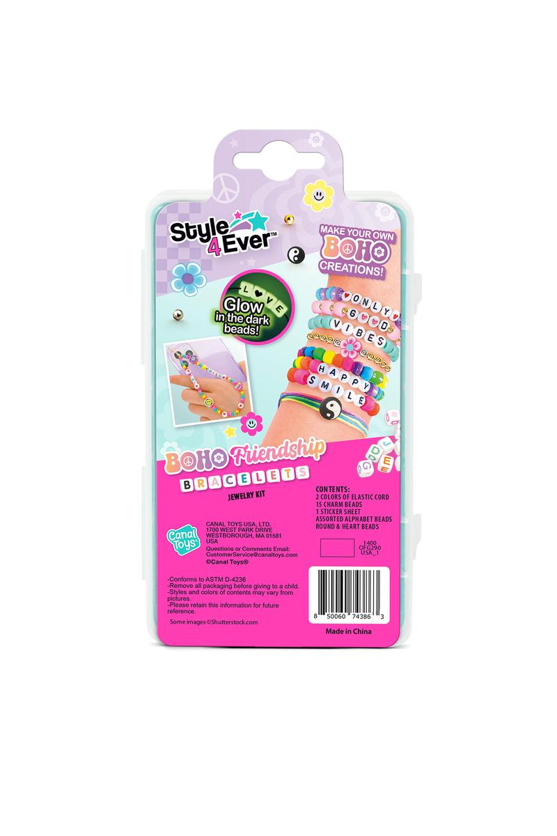 The Style 4 Ever™ Mini Boho Jewels Set is the ultimate DIY jewelry kit for kids who love crafting and creativity. Packed in a compact, travel-friendly case, each set includes everything needed to create colorful, trendy Boho friendship bracelets—perfect for self-expression and sharing with friends. With 300+ pieces, including glow-in-the-dark beads, alphabet letters, heart charms, and elastic cord, kids can mix and match to design totally unique accessories.