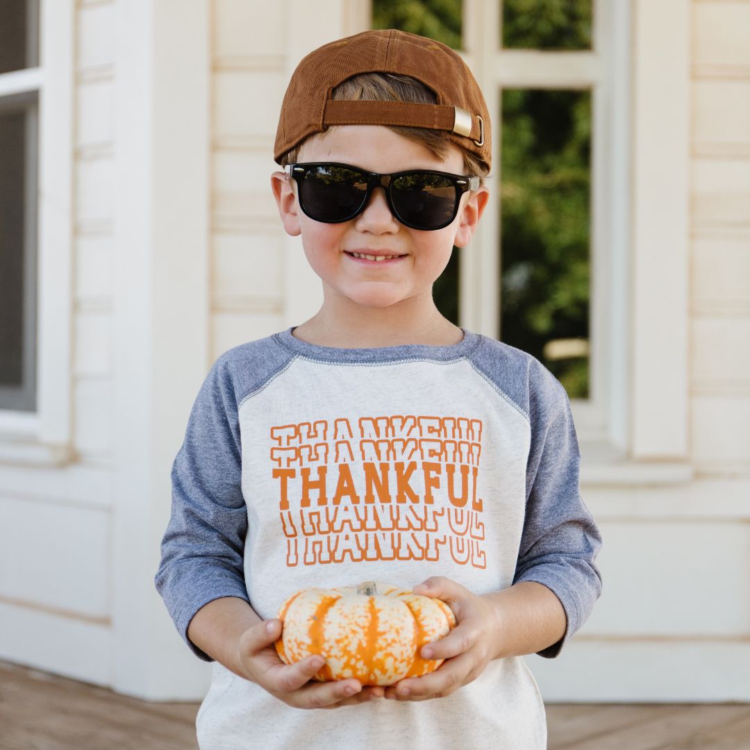 The Thankful Echo L/S Shirt is a fun and festive shirt for kids celebrating Thanksgiving!