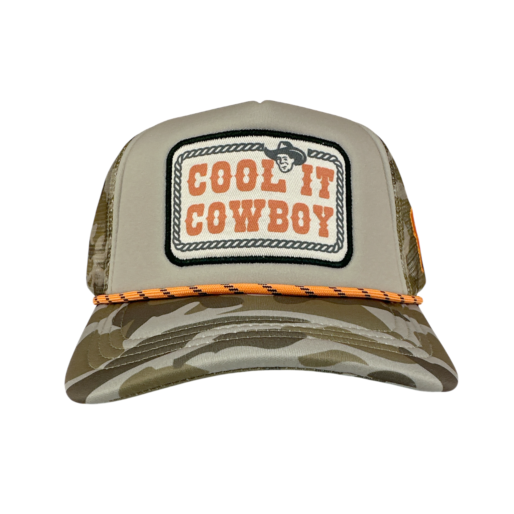 Tiny Whales Cool It Cowboy Trucker Hat - Tan Camo