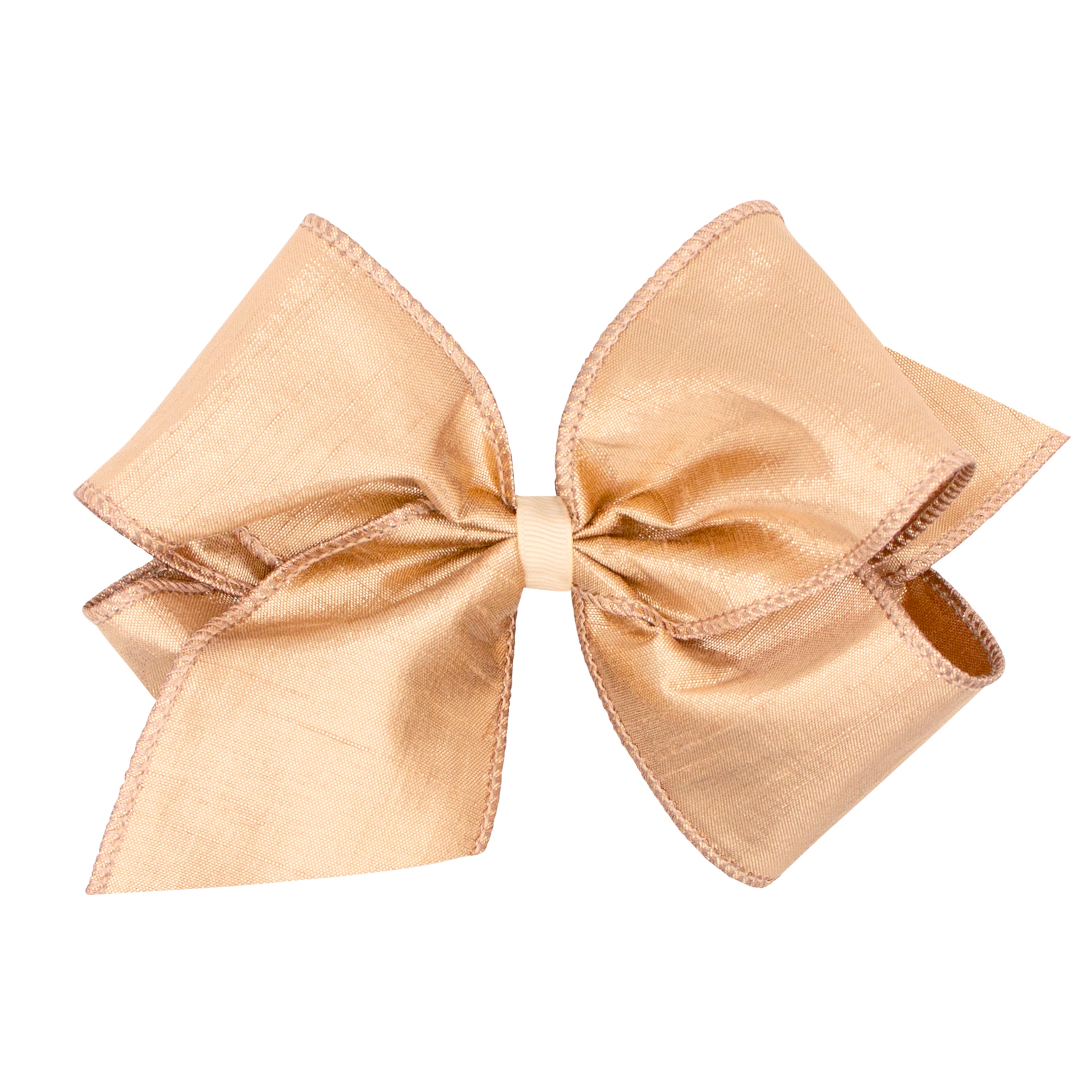 Wee Ones Metallic Dupioni Silk Hair Bow on Clippie - Champagne