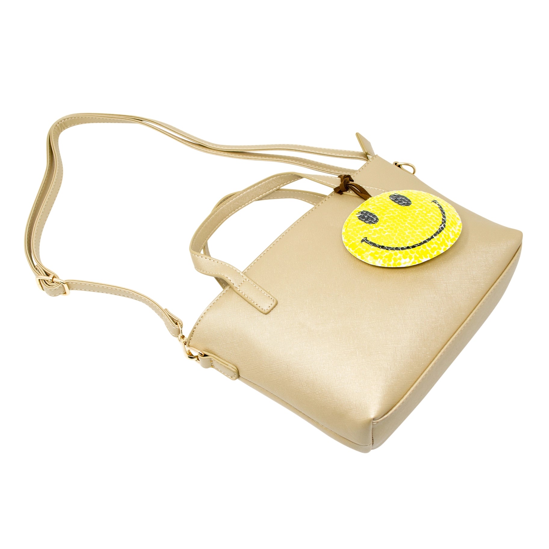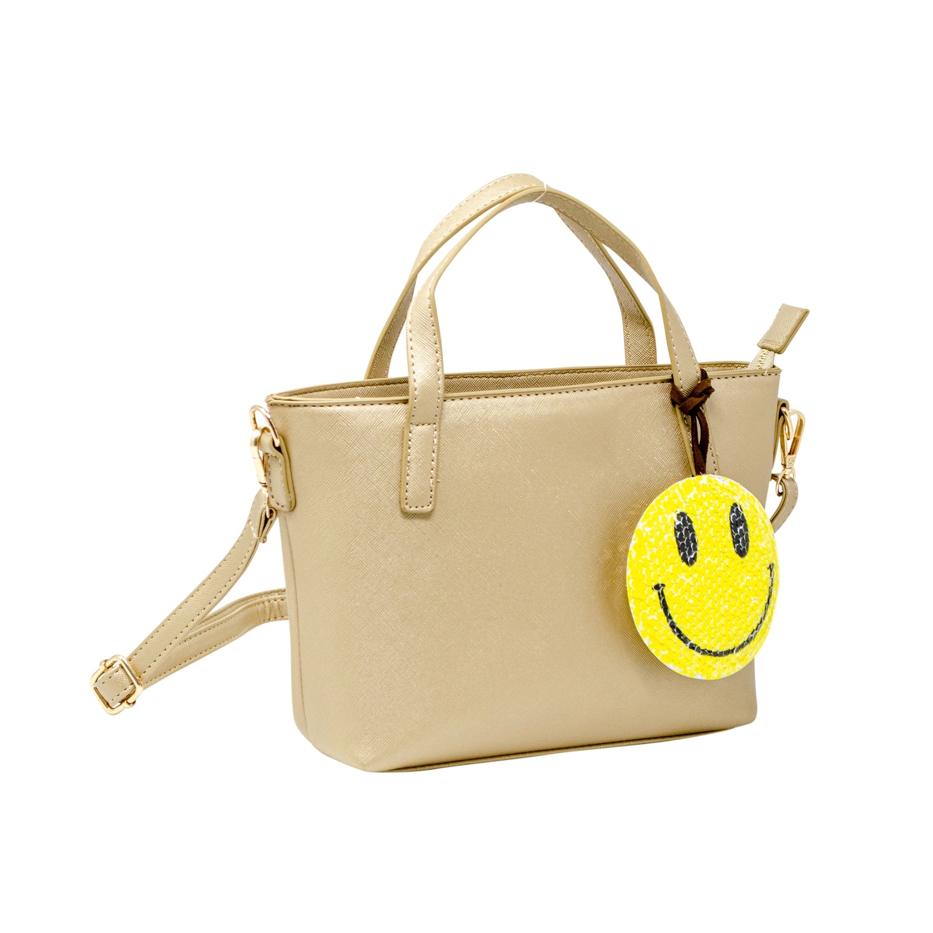 Zomi Gems Leather Tote Bag w/Charm - Gold w/Smiley