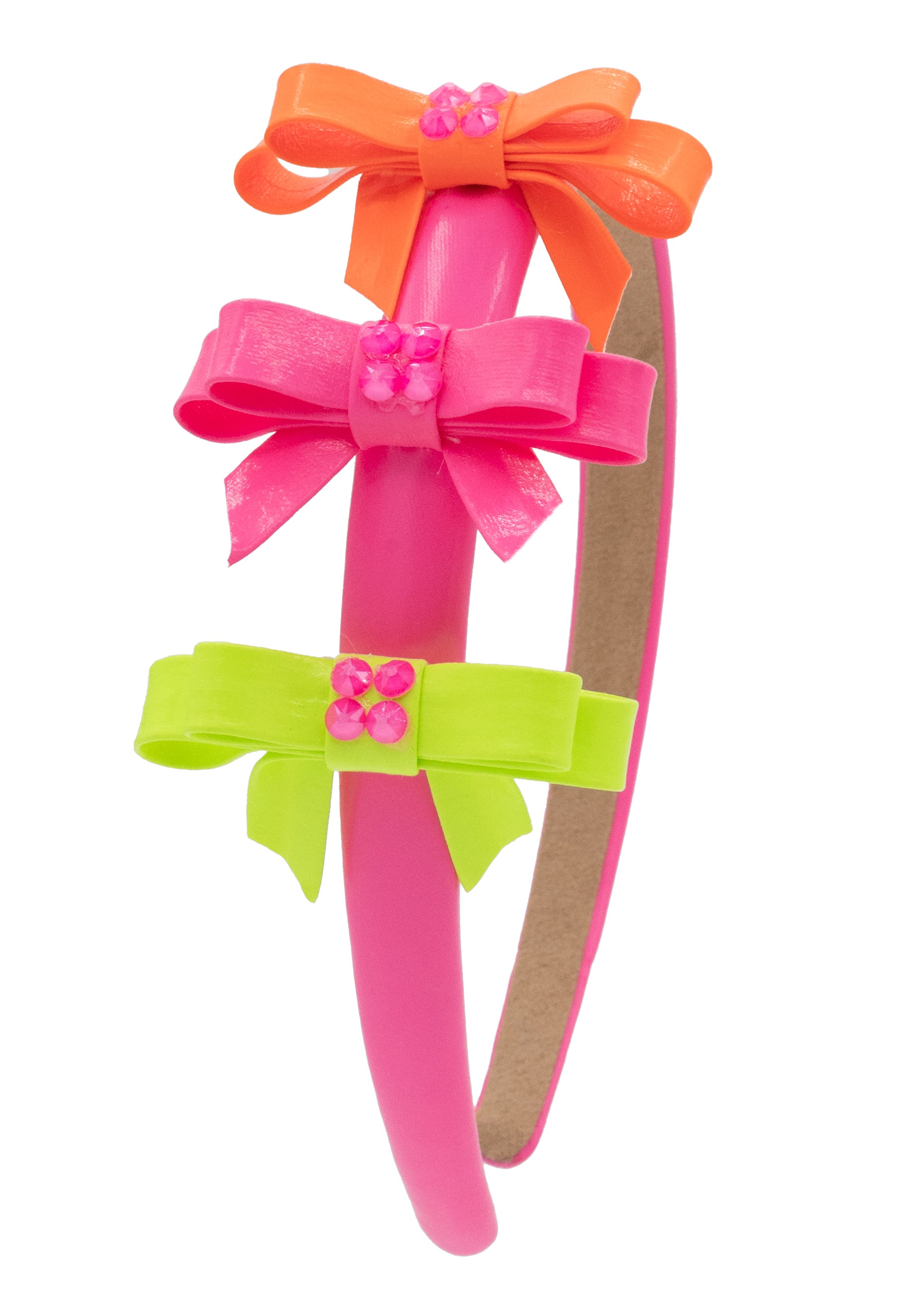 Bari Lynn Patent Leather 3 Bow Headband - Neon