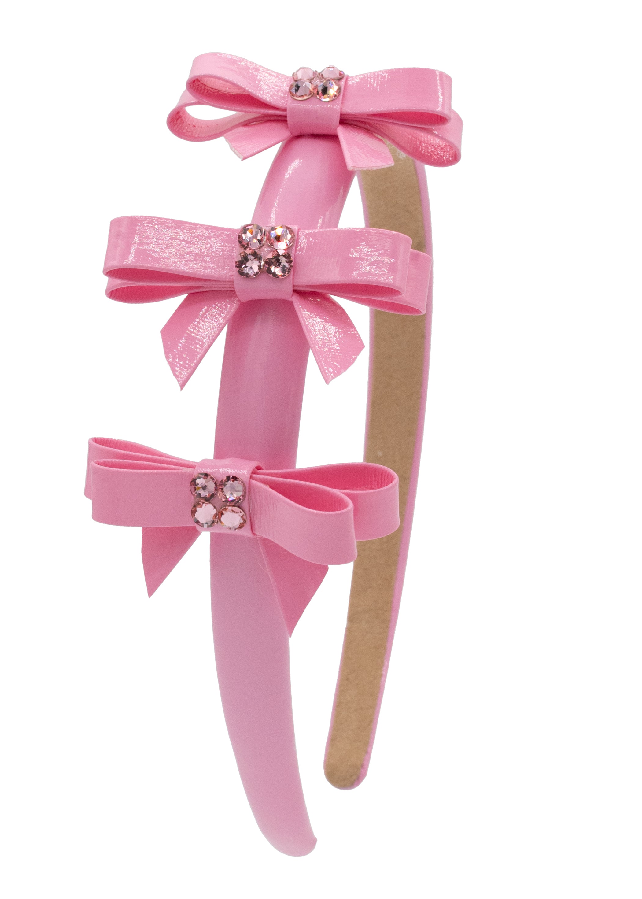 Bari Lynn Patent Leather 3 Bow Headband - Pink