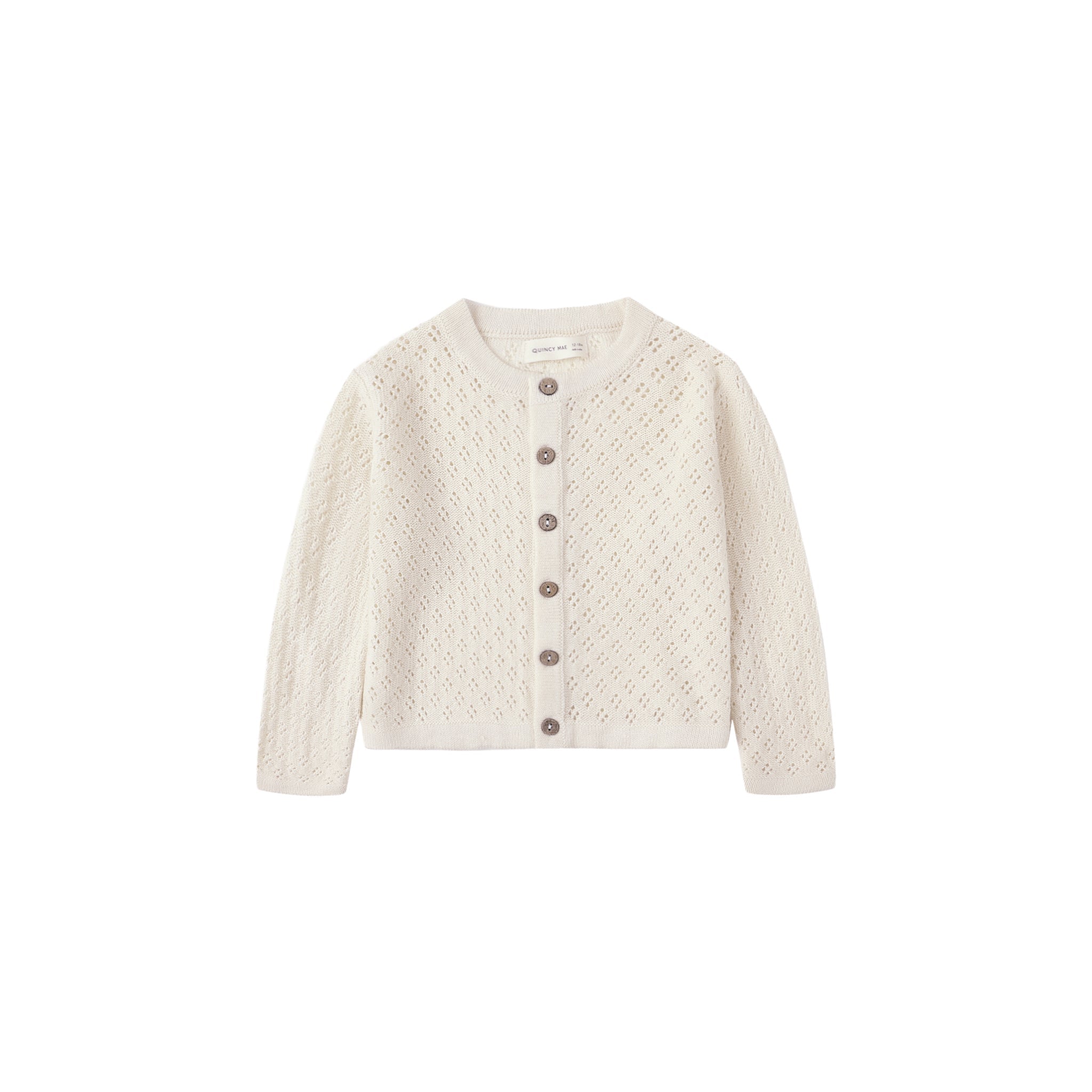 - This darling cardigan showcases a beautiful pointelle knit design and coconut buttons for an extra sweet look.