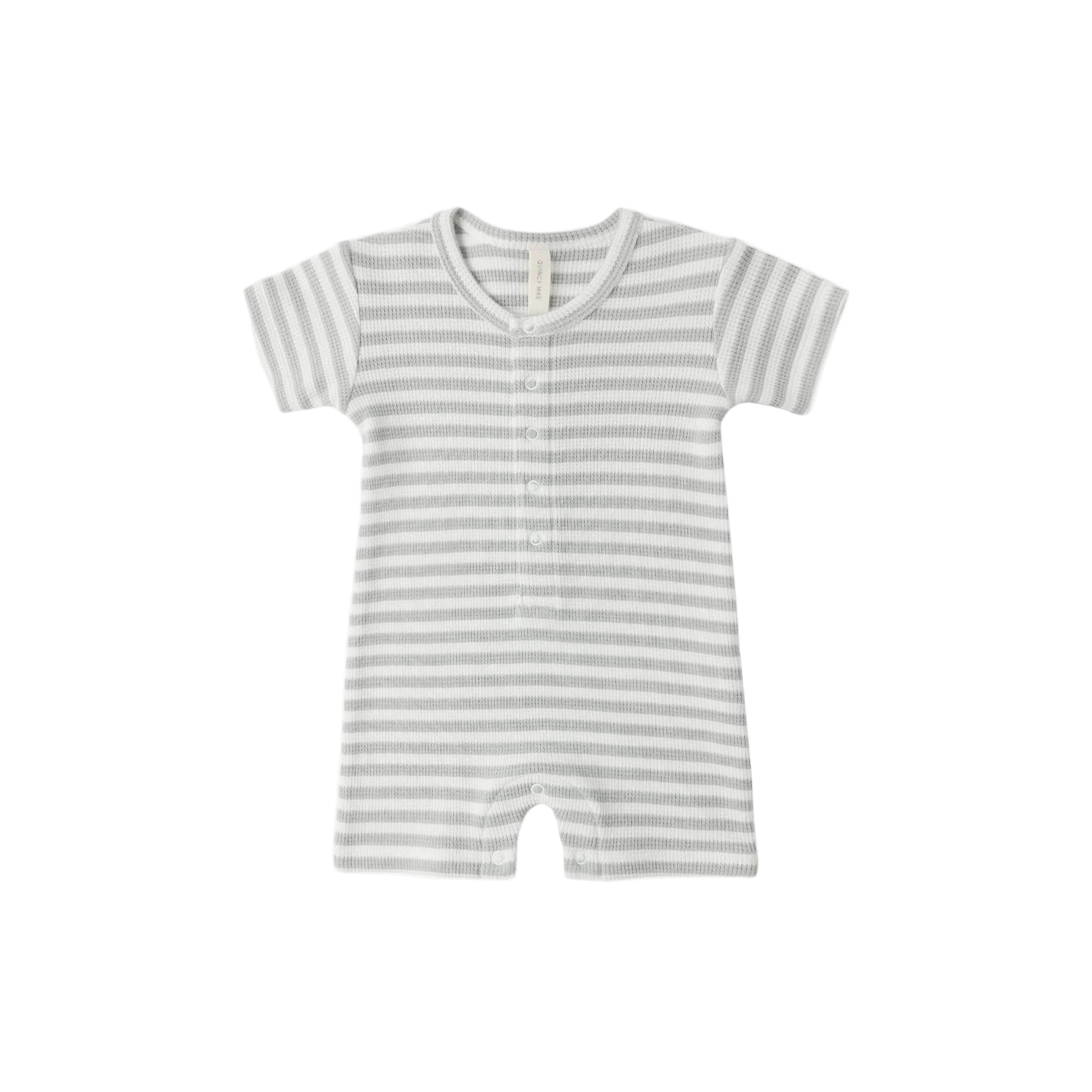 Quincy Mae Waffle Snap Romper - Sage Stripe