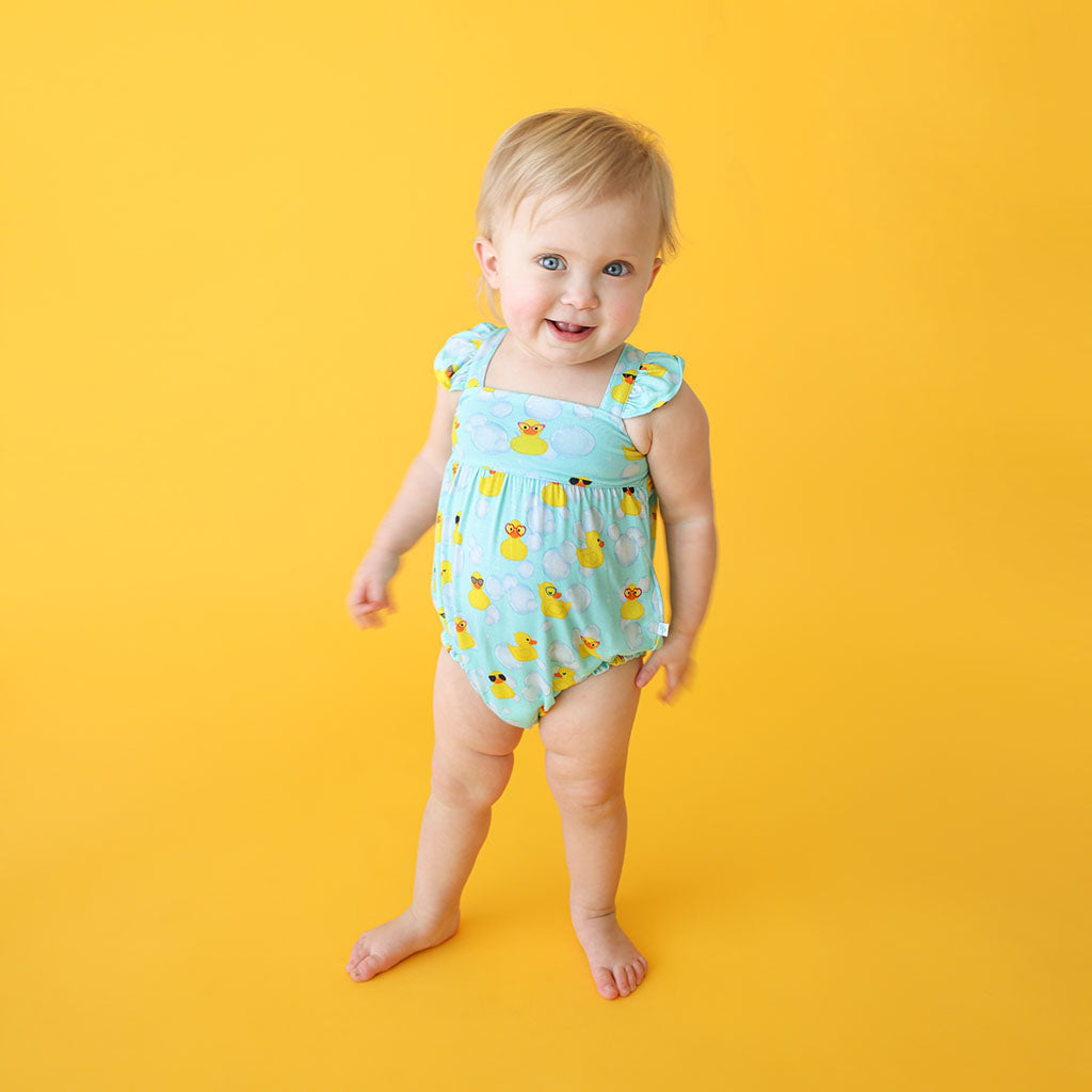 Posh Peanut Ducky Basic Ruffled Capsleeve Bubble Romper