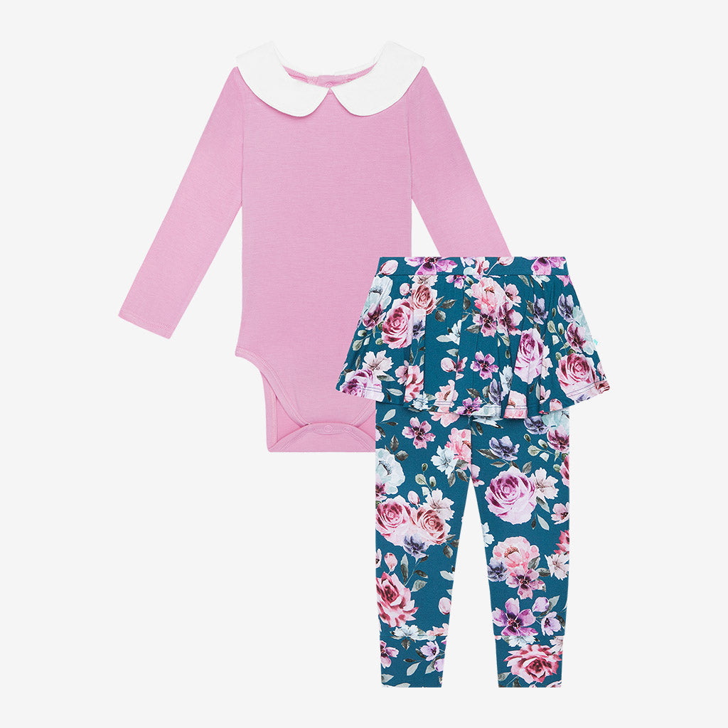 Posh Peanut Keisha L/S Peterpan Collar Bodysuit & Skirted Legging Set
