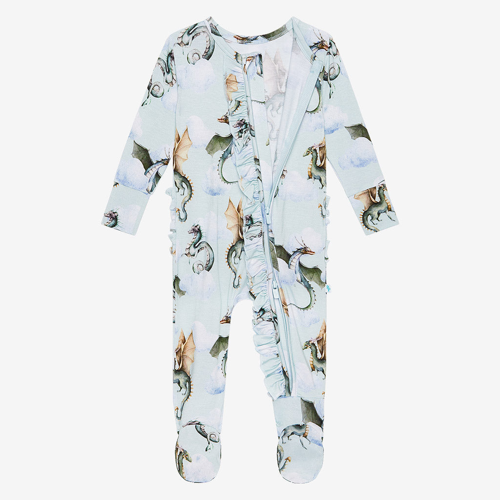 Viscose from bamboo one-piece footie coverall with reversible zipper opening. New reversible zippers are perfect for late-night changes and the ease of not undressing your peanut. Zip up or down for a quick change. Signature Posh Peanut Footie grips, elastic backing on footies for a snug fit and fold-over mittens in sizes NB and 0-3M. Buttery soft jammies so cute you can wear them out!