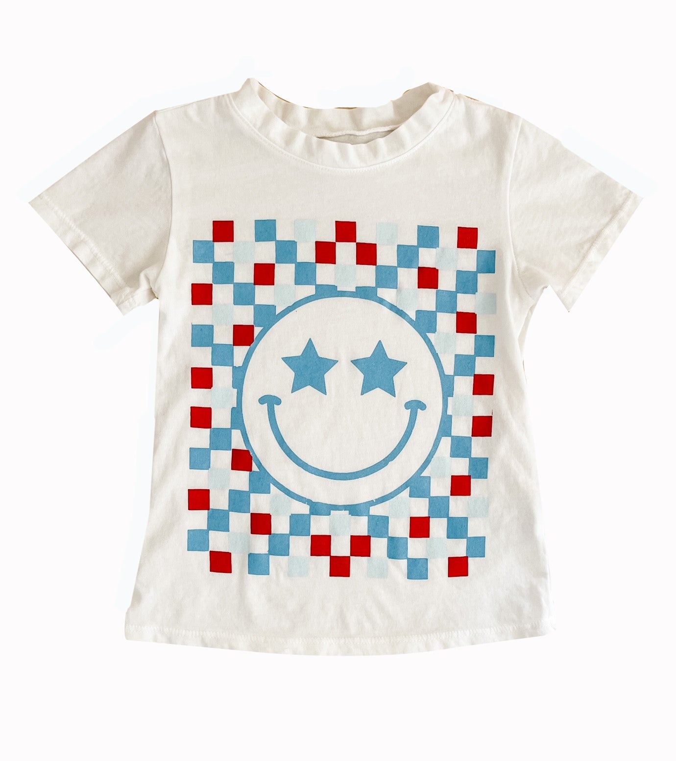 Brokedown Clothing Kid's Checkered Happy Face Tee in Off White