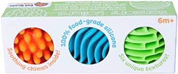 Set of 3 uniquely textured silicone spheres with beautiful chimes hidden inside
