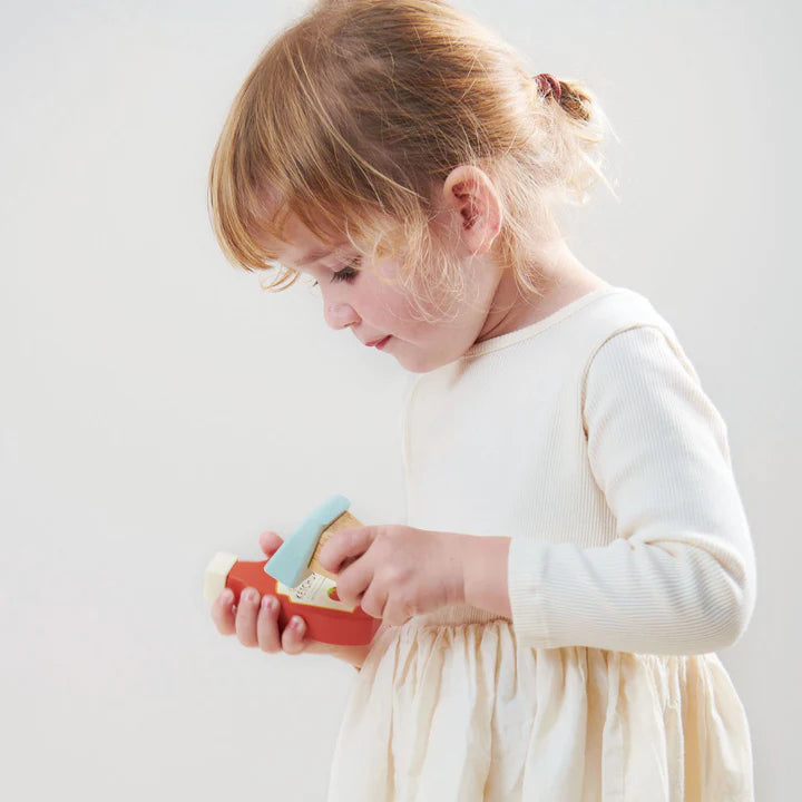 Ring up all your groceries with this fun and colorful wooden till with scanner.