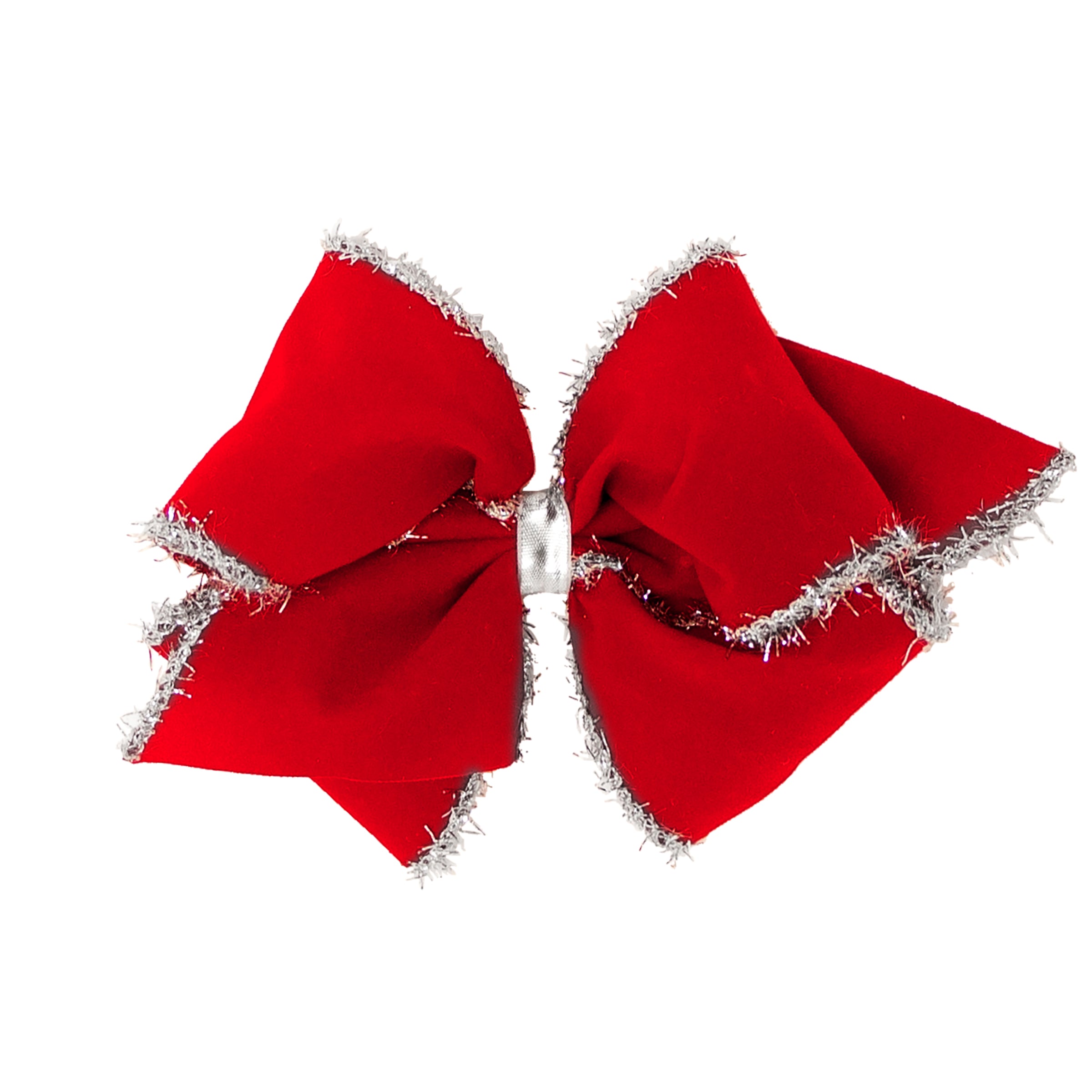 • These Wee Ones handcrafted hair bows are made with 2 1/4" sparkly ribbon and  accented with a flat knot in the center of the bow.