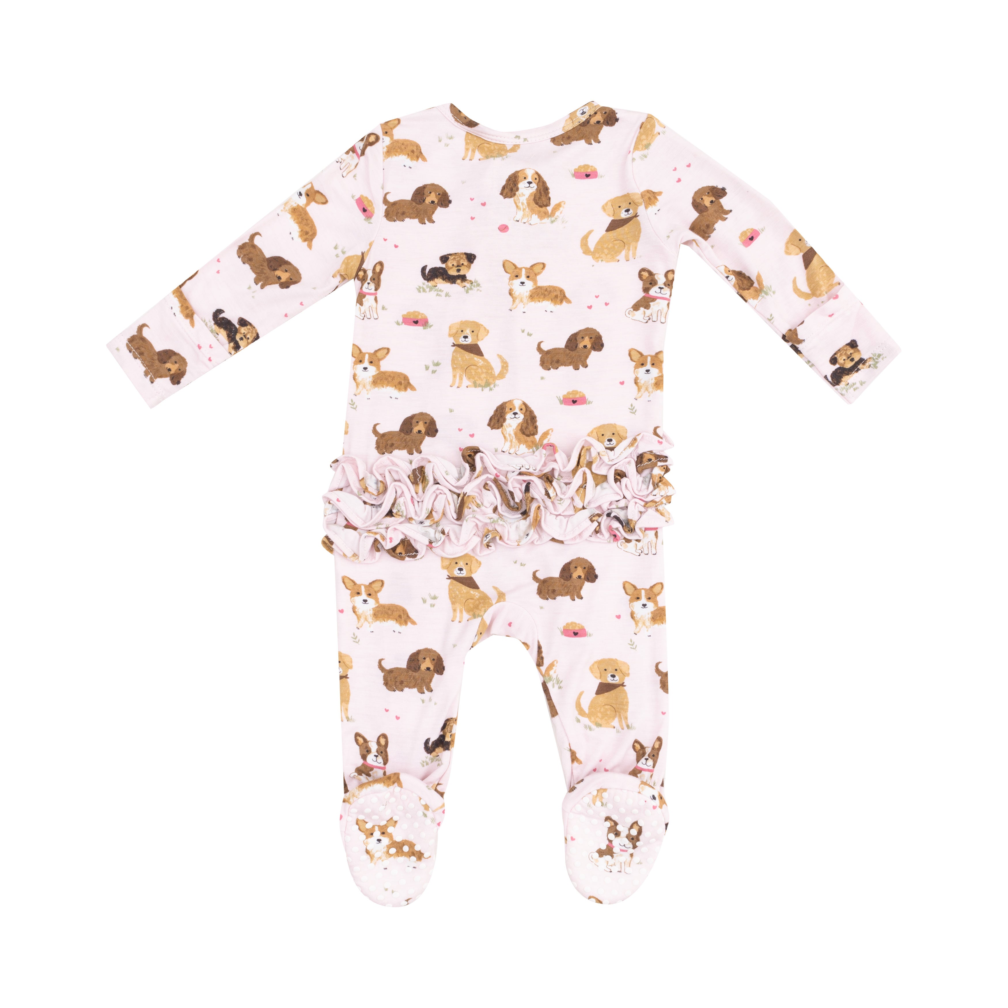 Angel Dear 2 Way Ruffle Back Zipper Footie - Best Friend Dogs Pink