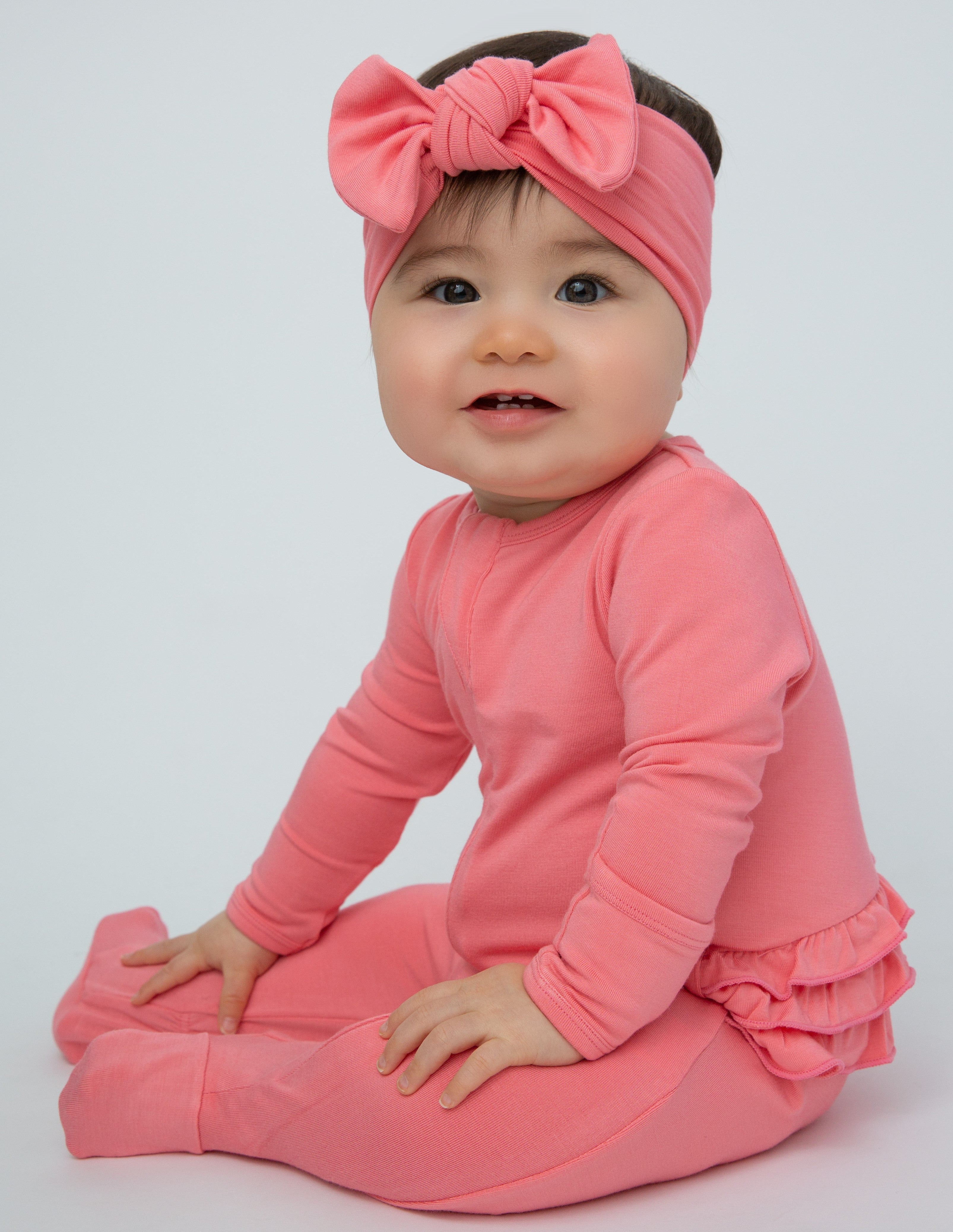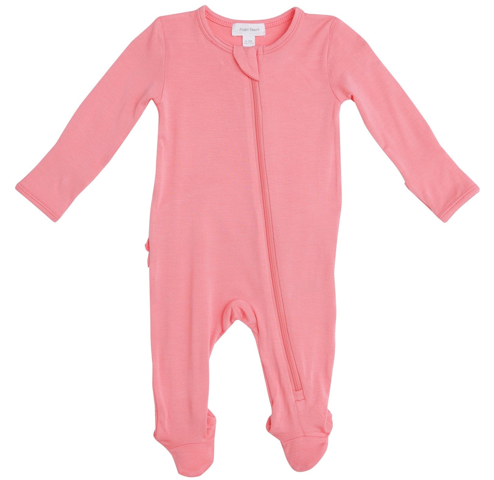 Angel Dear Basic Flamingo Pink Solid Bamboo Ruffle Back Zipper Footie