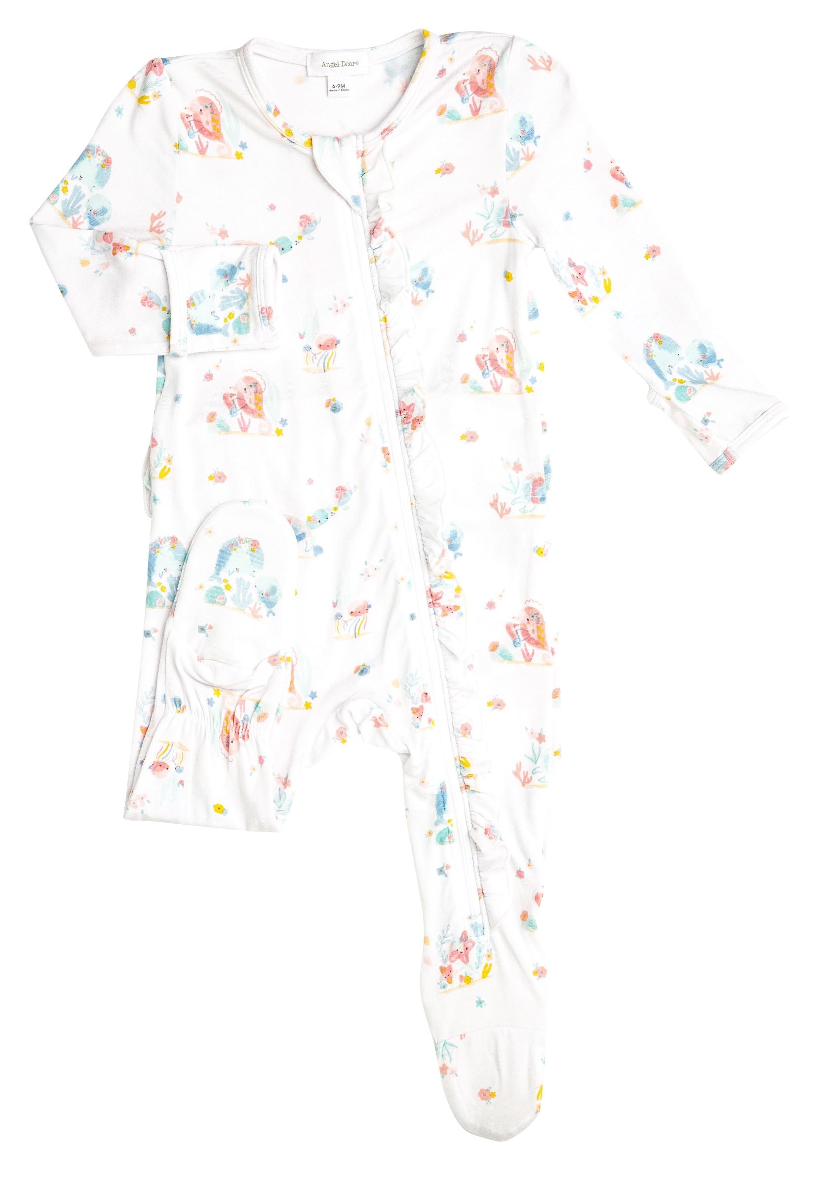 Angel Dear Iridescent Sea Creatures Bamboo Ruffle Front Footie with Zipper