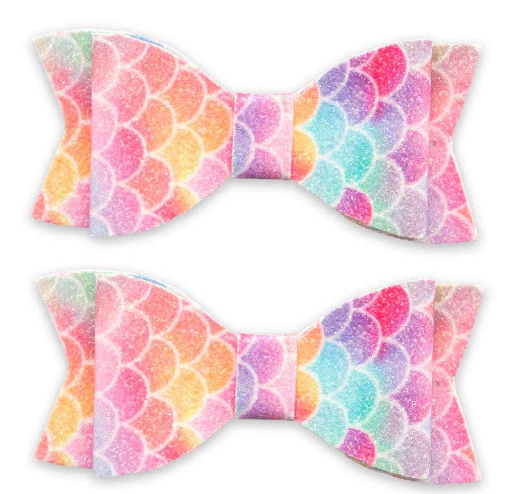 - This set includes 2 mermaid sparkle bow tie alligator clip bows..perfect for pig tails!