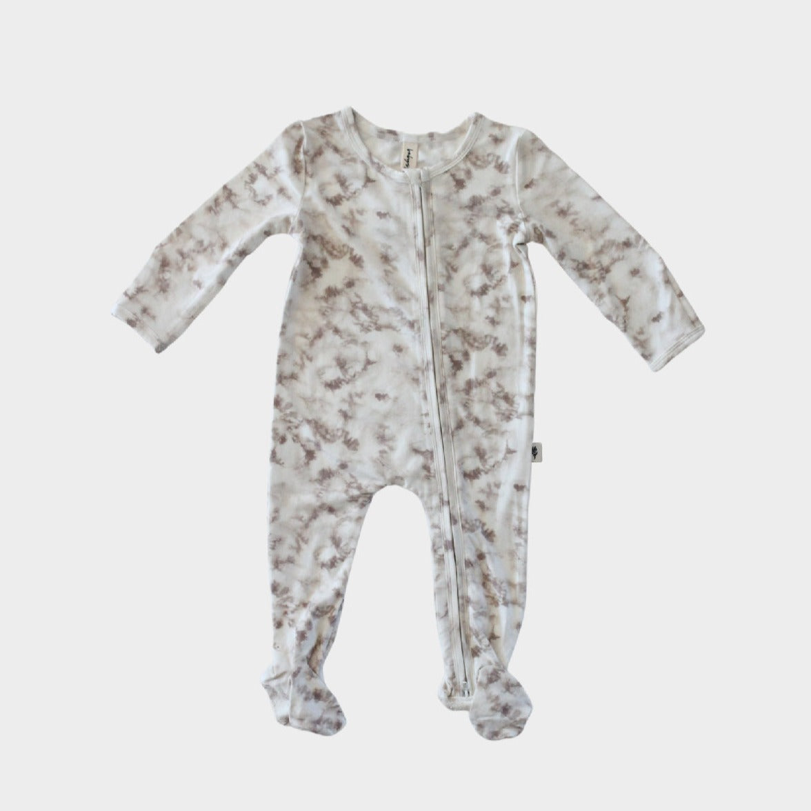 Babysprouts Footie Romper with Zipper in Taupe Tie Dye