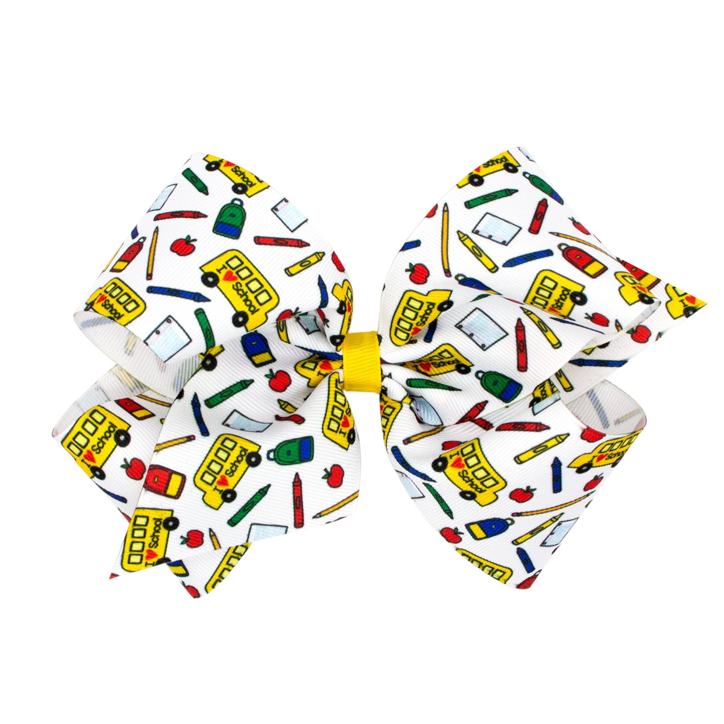 Back To School Bus Printed Grosgrain Hair Bow on Clippie