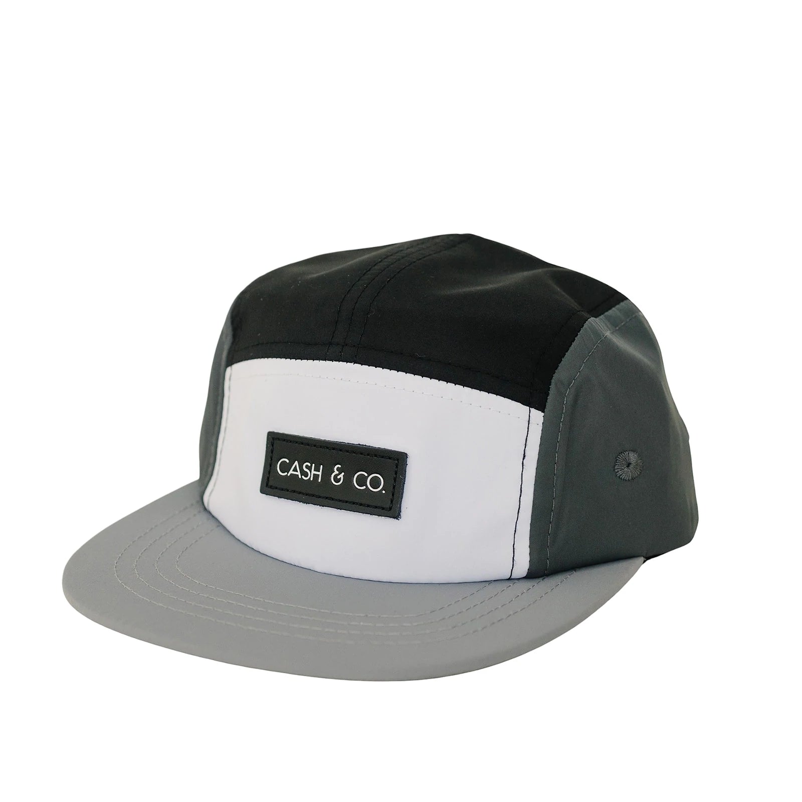 Black, Wolf Grey, Dark Grey and white 5 Panel hat.