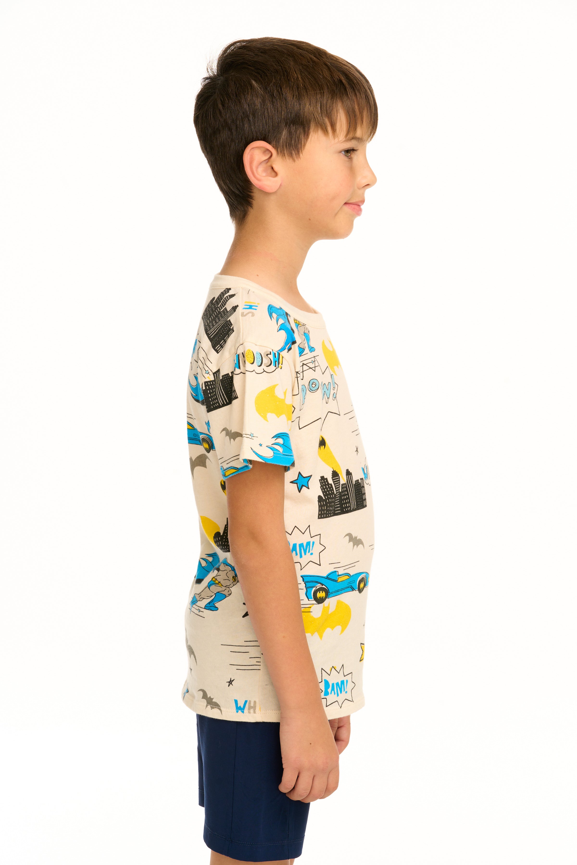 Take a cruise through Gotham City in style in our Boy's Batmobile Short Sleeve Tee in off-white. Your little superhero will love its comfy cotton jersey fabric which is supercharged with softness.