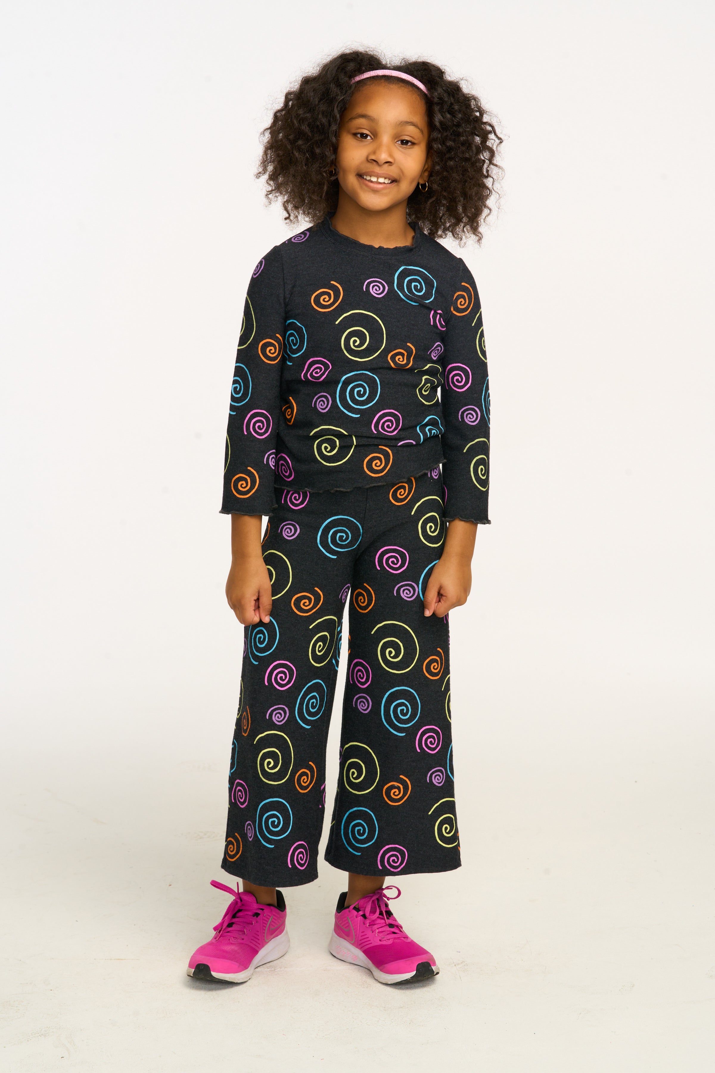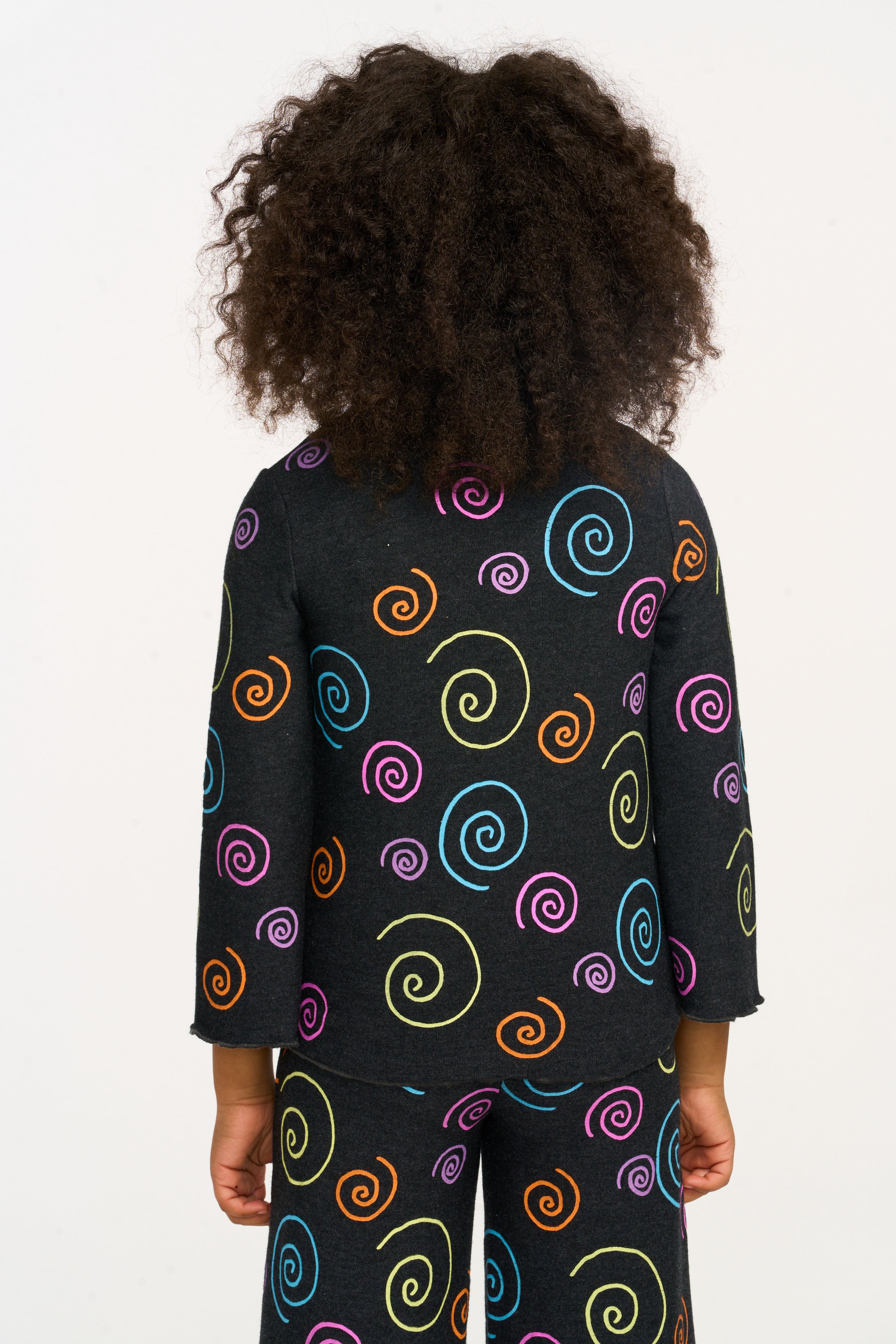 With an eye-catching all-over graphic of spirals in rainbow colors, this is sure to be a hit. Plus, it pairs perfectly with matching pants and boots - the PERFECT way to dress up the kiddo!