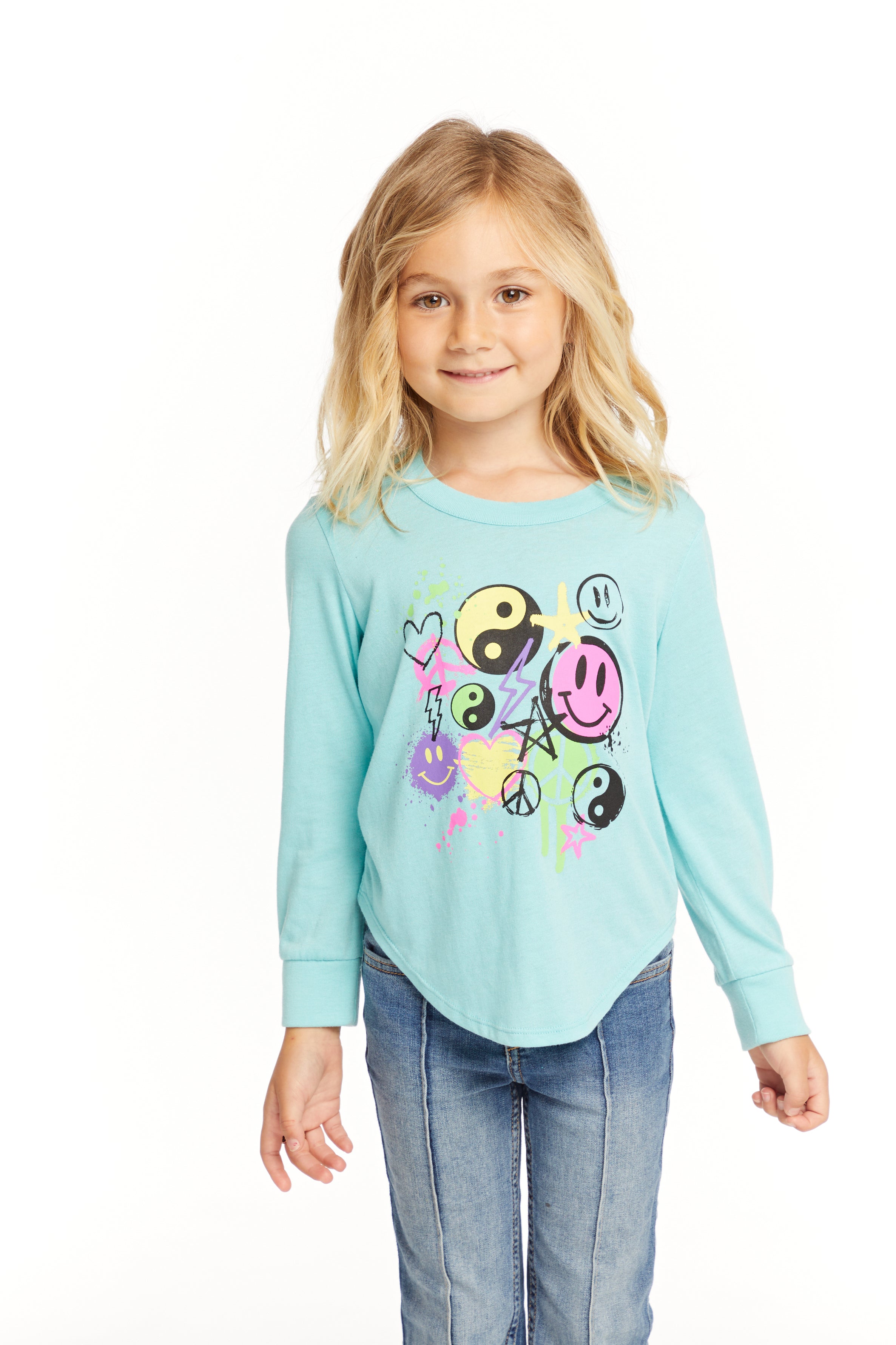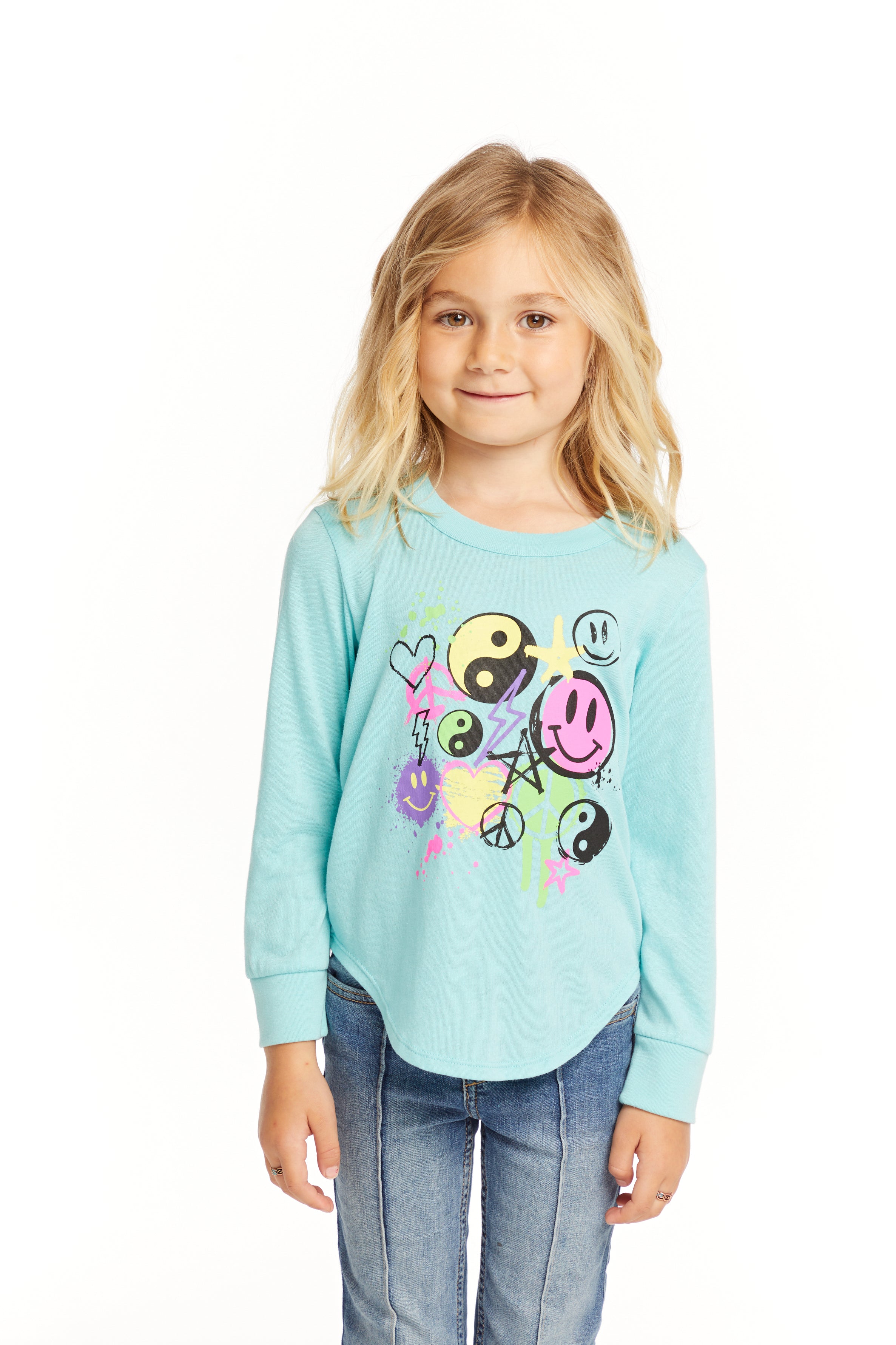 Your kiddo will be over the moon for this cool and chic smiley and peace graphic Long Sleeve Tee!