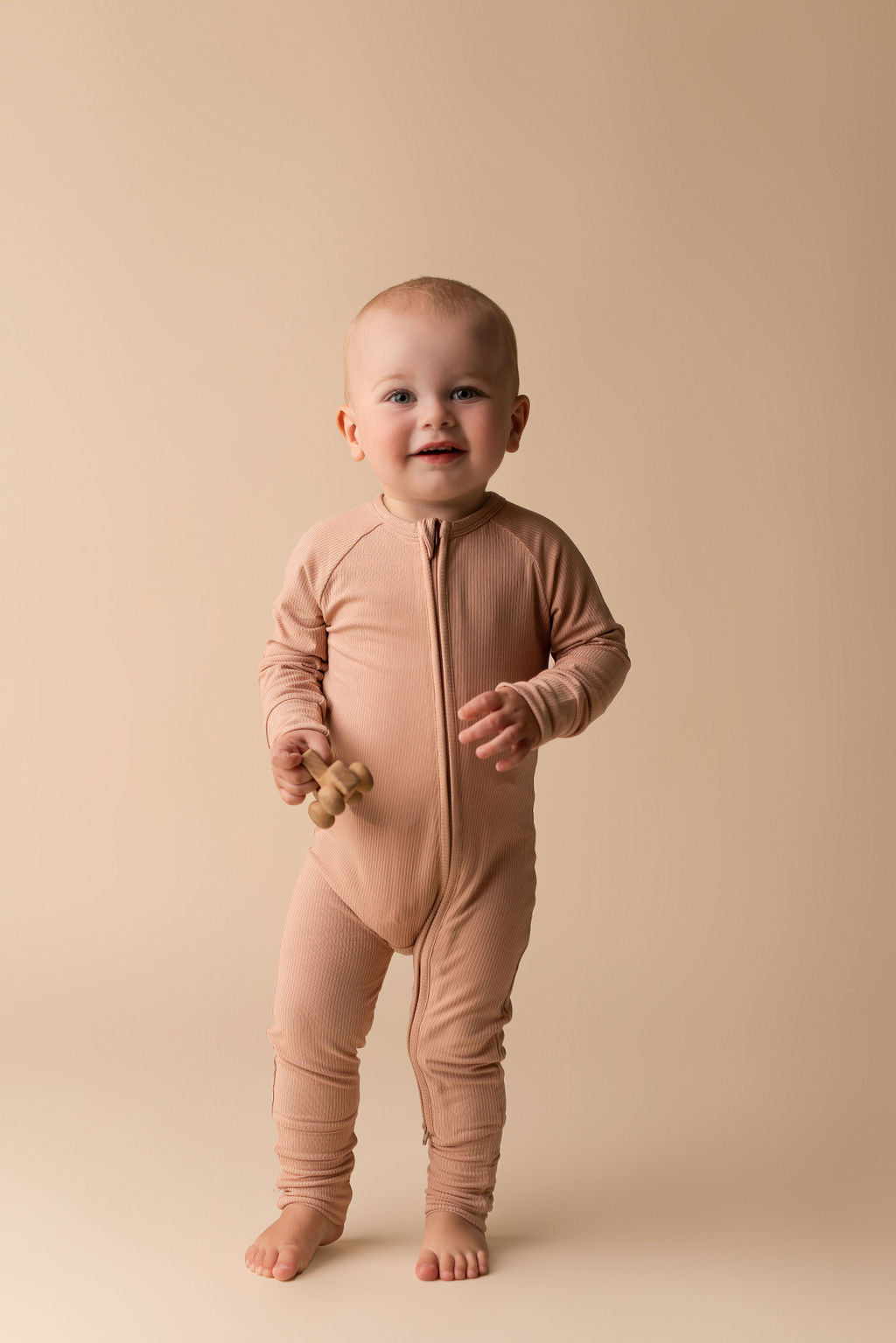 In My Jammers Solid Desert Ribbed Zipper Romper