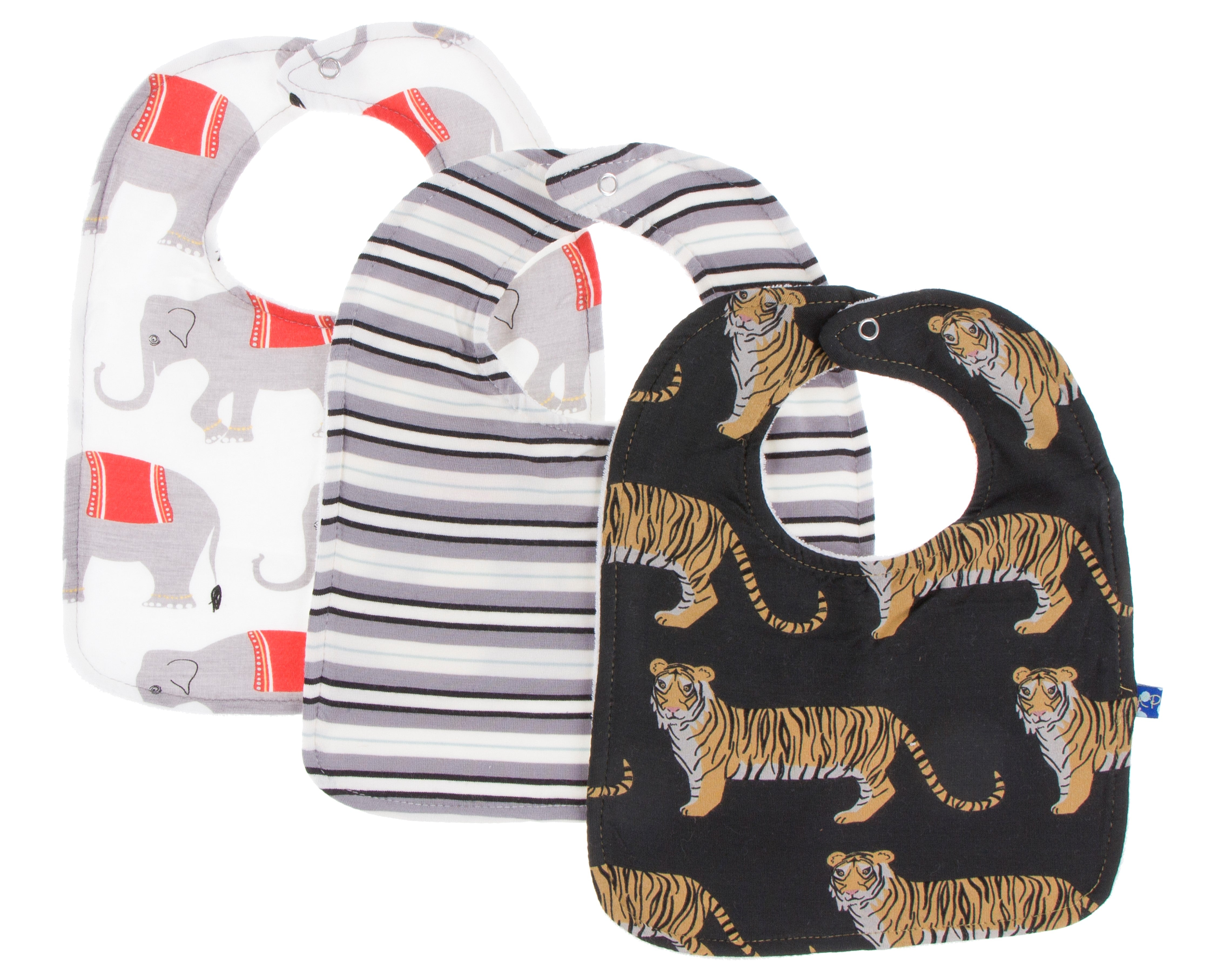 KicKee Pants Bib Set-Natural Indian Elephant/India Pure Stripe/Zebra Tiger