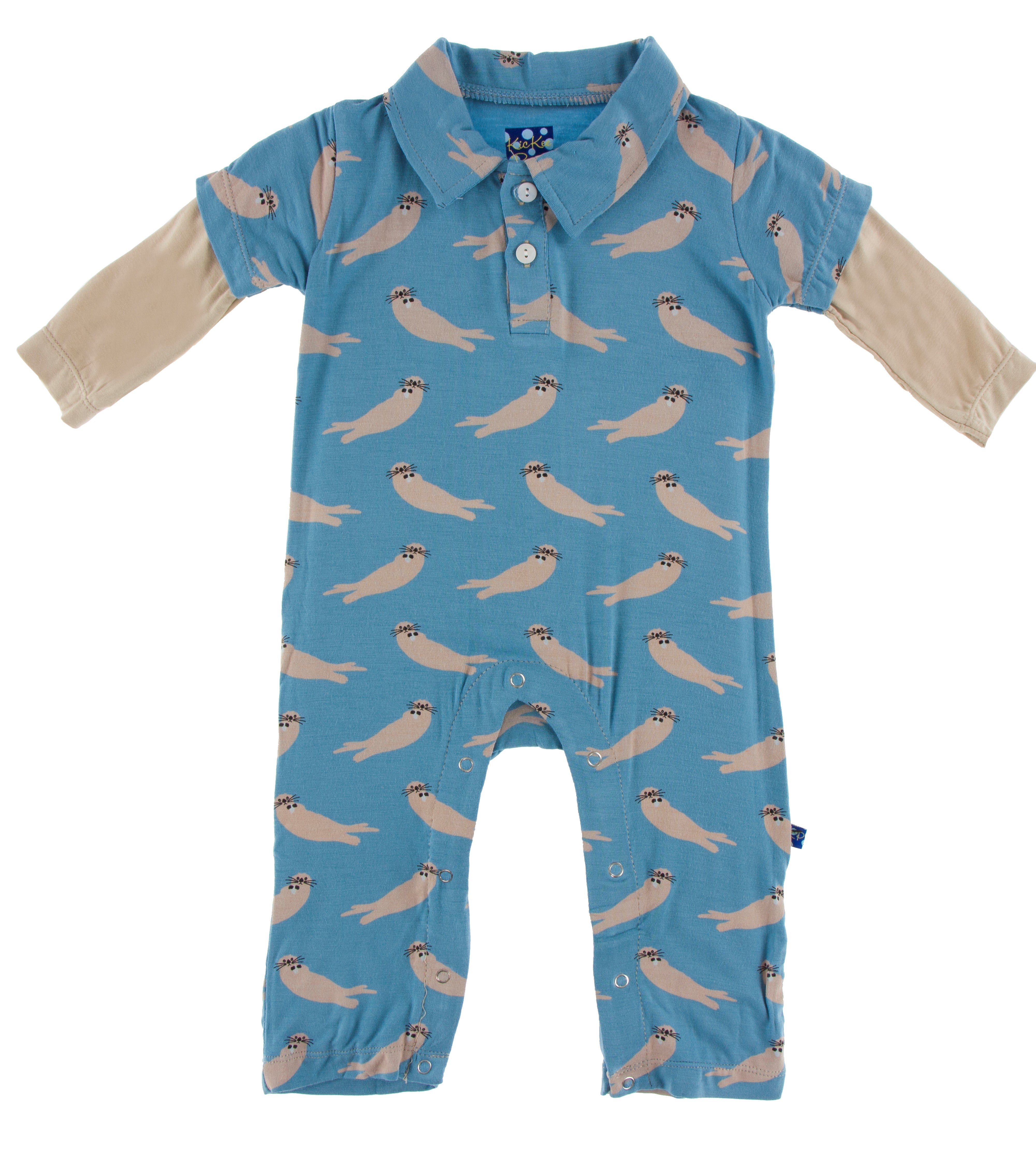 KicKee Pants Blue Moon Sea Otter Double Layer L/S Polo Romper