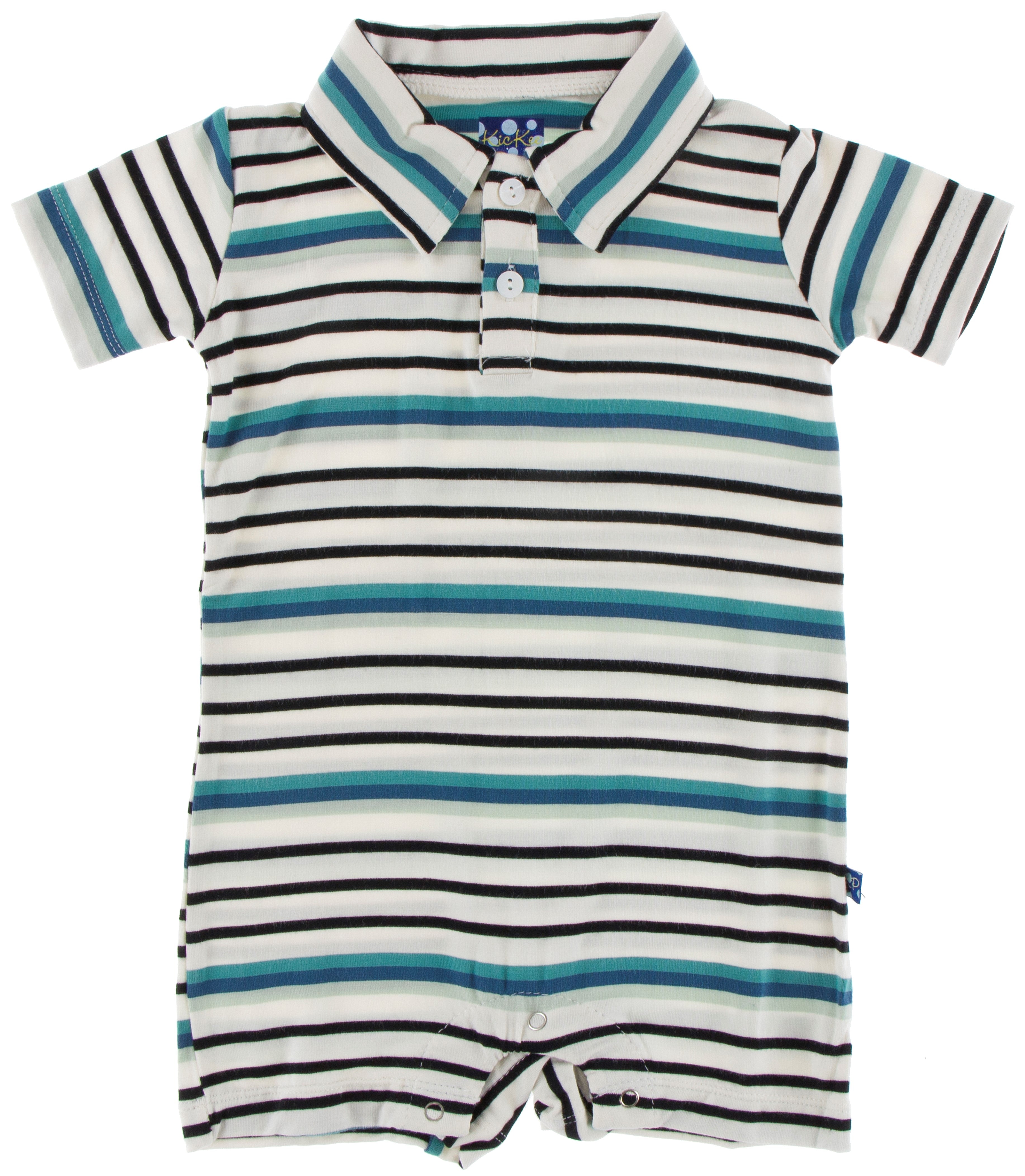 KicKee Pants Neptune Stripe S/S Polo Romper