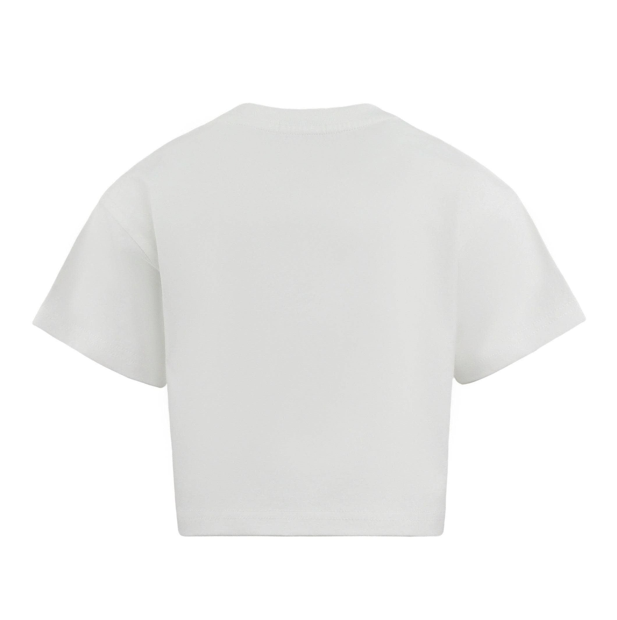 - White crop t-shirt featuring a playful mix of colorful doodle-style graphics