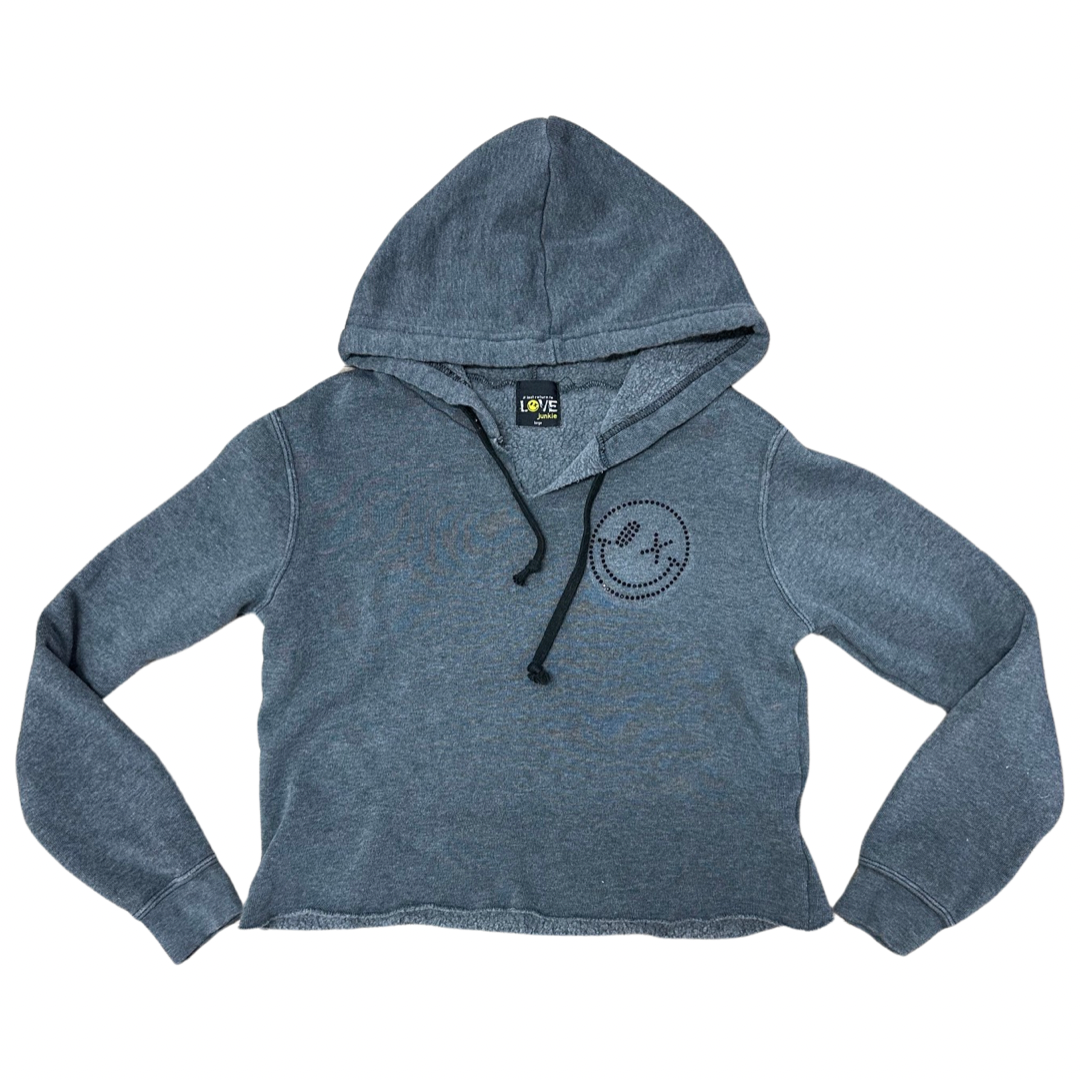 Love Junkie Rhinestone Smiley Crop Hoodie - Charcoal