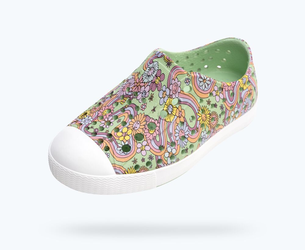 Native Jefferson Print Shoes - Fig Green / Shell White / Rain Floral